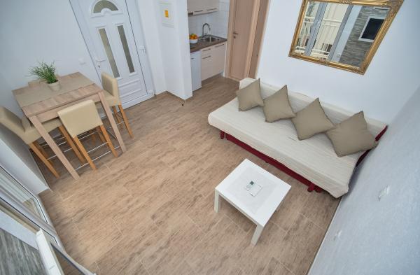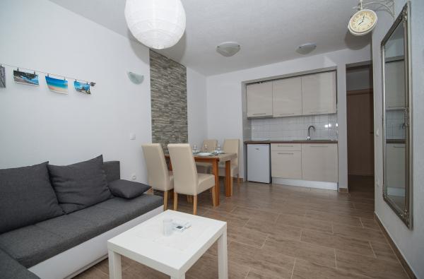 Nowoczesne apartamenty z widokiem na morze położony w cichej okolicy wsi i zapewniają pełną odpoczynku i relaksu. Apartamenty posiadają piękny dziedziniec z parkingiem i są idealne dla wszystkich gości (2) (2 dorosłych, rodzin z dziećmi, dla młodych ludzi). Urządzone plaży jest mniej niż 200m, a do przechowywania żywności jest w 1 minutę.
