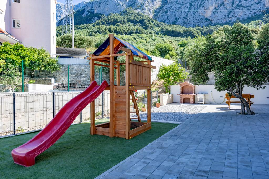 Apartamenty Villa Frane znajdują się w Makarskiej, w spokojnej i zadbanej okolicy, na łagodnym wzgórzu nad miastem. Zaledwie 10 minut spacerem dzieli je od malowniczego centrum miasta, co sprawia, że lokalizacja jest idealnie zrównoważona – wystarczająco cicha, aby się zrelaksować, a jednocześnie blisko wszystkich udogodnień, jakie oferuje Makarska. Zapraszamy do nowoczesnych i w pełni wyposażonych apartamentów z dwiema sypialniami, idealnych dla rodzin, par lub grup przyjaciół, którzy pragną komfortowego zakwaterowania w jednym z najpiękniejszych miejsc na Adriatyku. Obiekt położony jest około 1,5 km nad centrum, zapewniając gościom spokój, prywatność i piękny widok na okolicę. Dom oferuje łącznie 6 apartamentów, każdy z dwiema sypialniami, prywatnym balkonem i klimatyzacją. Goście mają również dostęp do dodatkowych udogodnień, które uprzyjemnią im pobyt: winda w budynku, zewnętrzne miejsce parkingowe dla każdego apartamentu, plac zabaw dla dzieci – idealny dla najmłodszych, wspólny grill do spotkań towarzyskich i relaksu na świeżym powietrzu. Idealny wybór na wakacje w Makarskiej.
