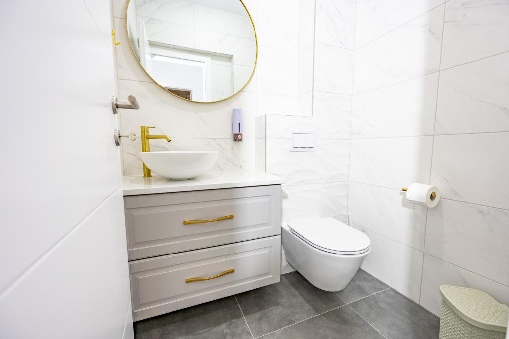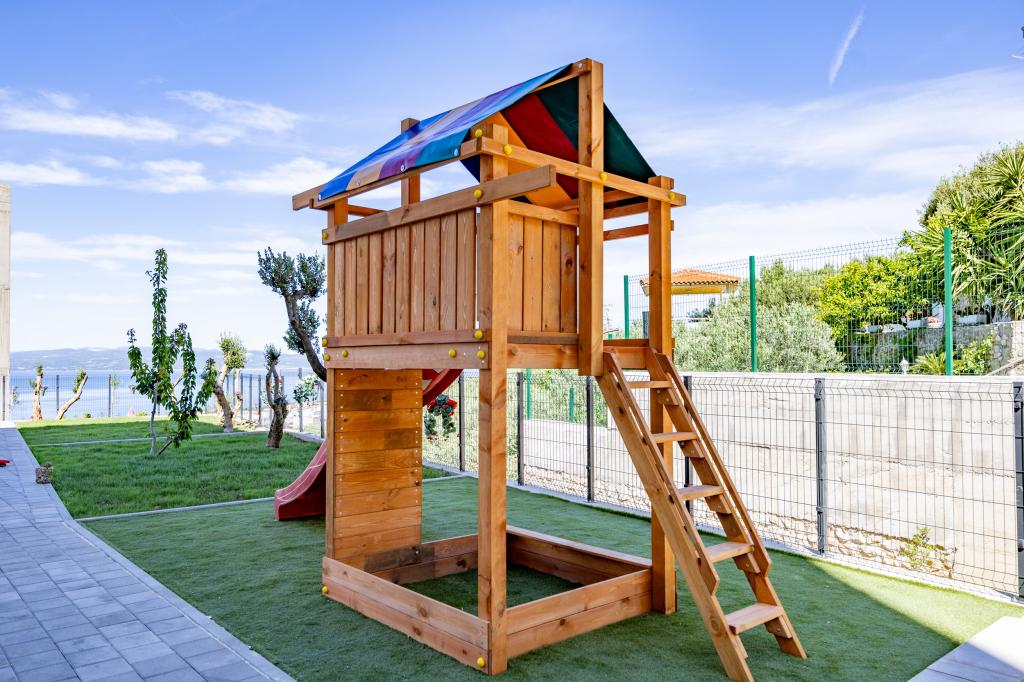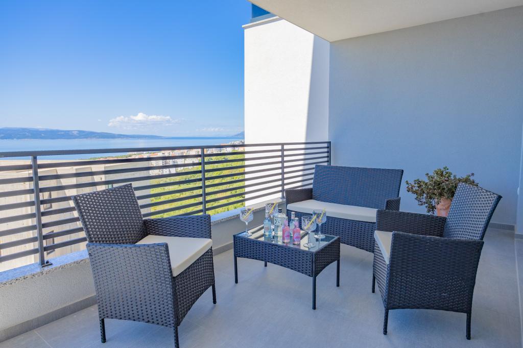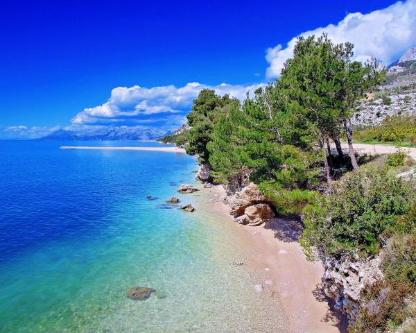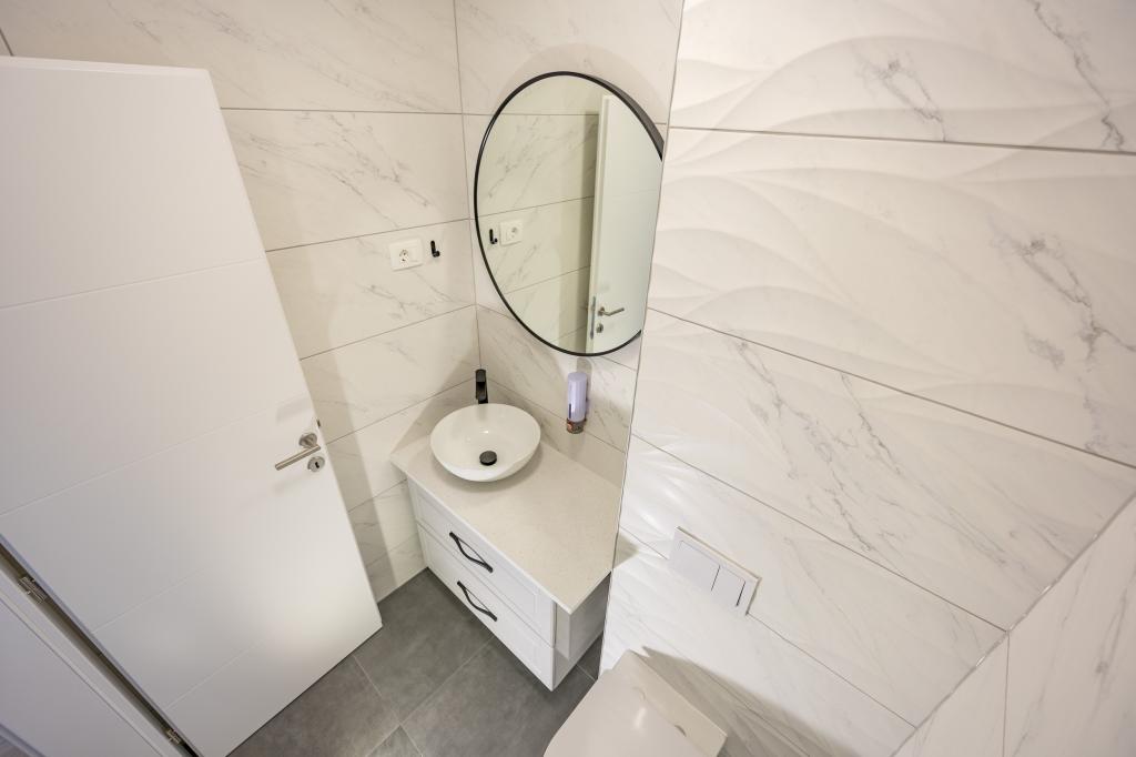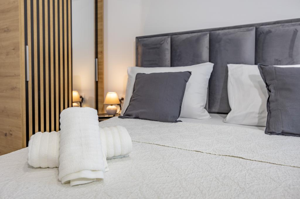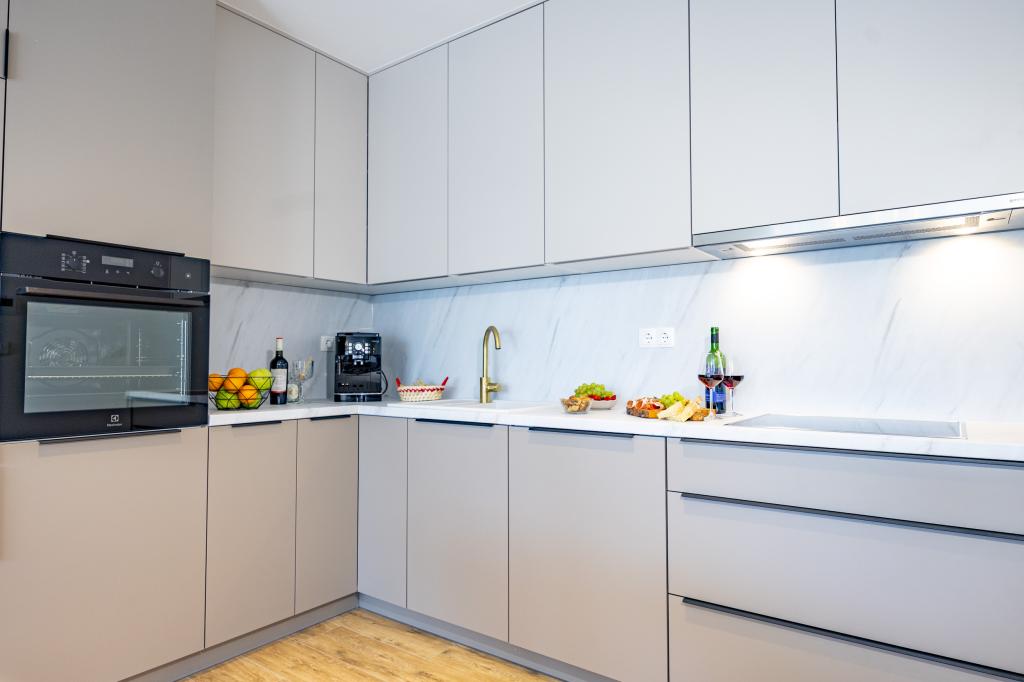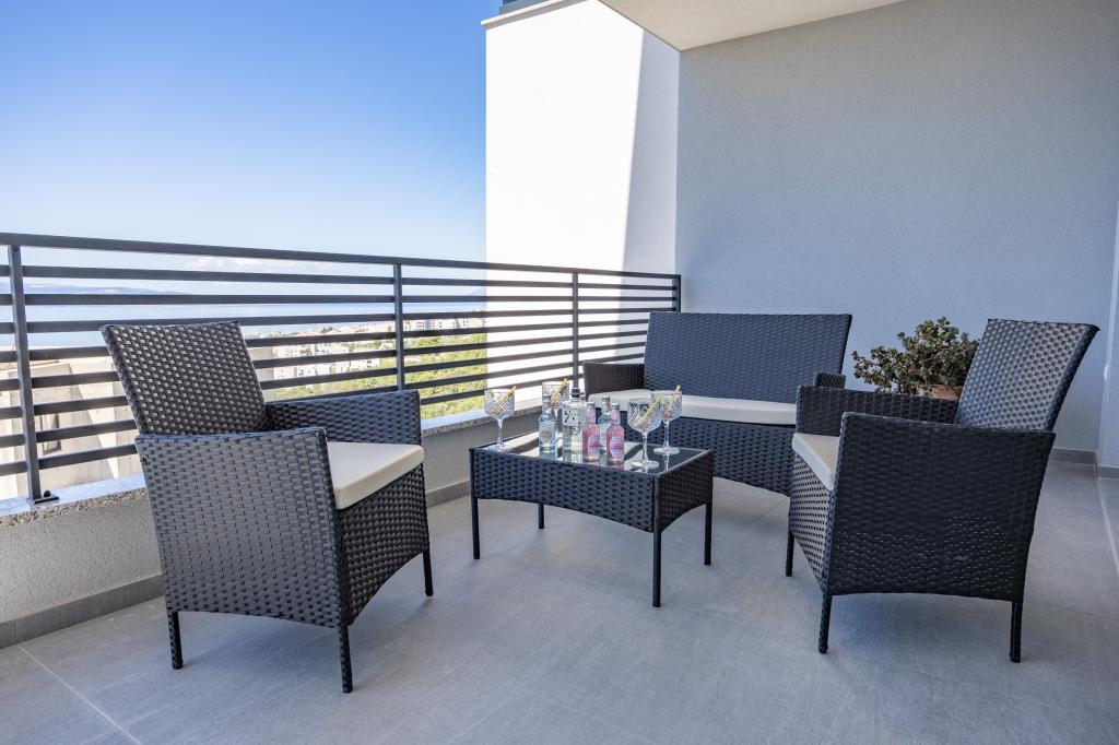 Każdy apartament emanuje nowoczesnym designem i świeżo wyremontowanym wnętrzem. W przestronnym salonie, urządzonym gustownymi meblami i nowoczesnymi detalami, poczujesz się jak w domu. Otwarta przestrzeń naturalnie łączy salon z w pełni wyposażoną kuchnią, gdzie czekają na Ciebie eleganckie blaty, wysokiej jakości sprzęty AGD i cała przestrzeń potrzebna do przygotowania ulubionych posiłków. Z salonu wychodzi się na przyjemny balkon – idealne miejsce na poranną kawę lub wieczorny relaks przy lampce wina i niezapomnianym zachodzie słońca nad Adriatykiem. Każdy apartament posiada dwie wygodne sypialnie z podwójnymi łóżkami, wyposażone w miękką pościel i mnóstwo miejsca do przechowywania, nowoczesną łazienkę i dodatkową toaletę. Apartamenty są klimatyzowane i w pełni wyposażone: TV/SAT, internet, pralka, zmywarka, ekspres do kawy i wszystko, czego potrzebujesz do przyjemnego i beztroskiego pobytu.