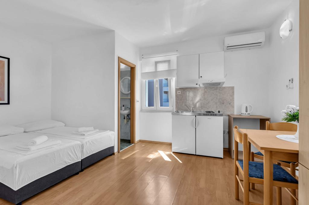 W cenę wliczone są: Klimatyzacja Opłata dzienna 1 EUR/osoba/noc Miejsce parkingowe Ręczniki (nie wymieniane codziennie) Pościel (wymieniana co 5-7 dni w zależności od długości pobytu) Końcowe sprzątanie apartamentu Internet Wi-Fi