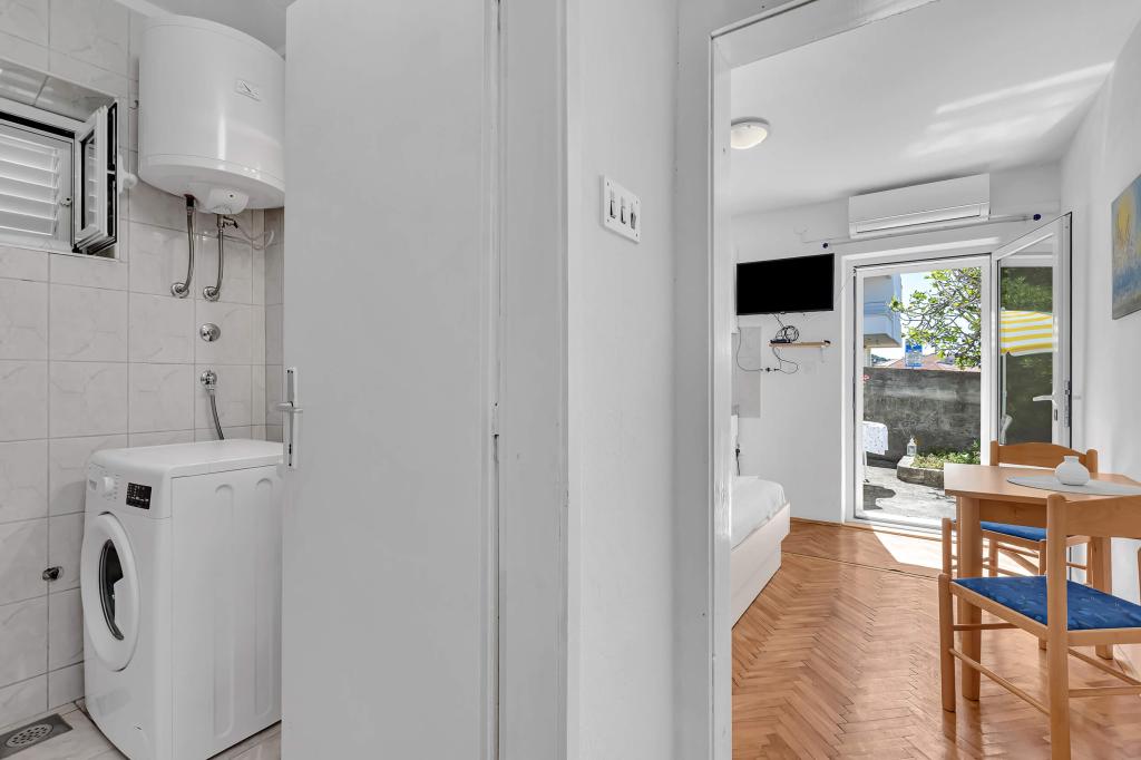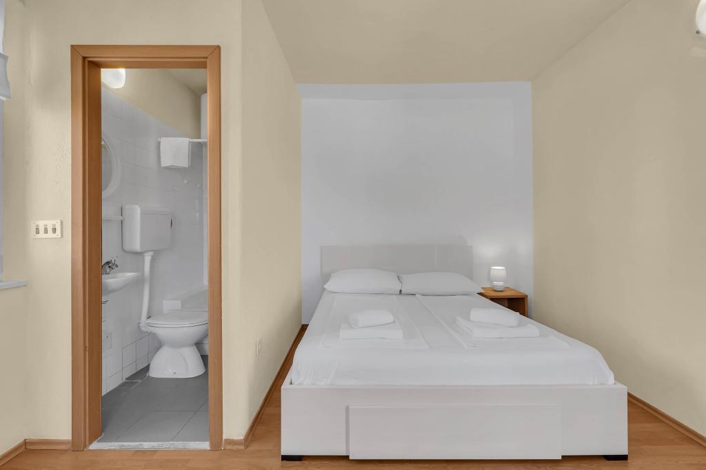 Dom z 4 apartamentami typu studio. Położony blisko wszystkich głównych udogodnień, głównego placu 300 m, rynku 300 m, plaży 700 m, głównej promenady (riva 350m).