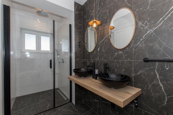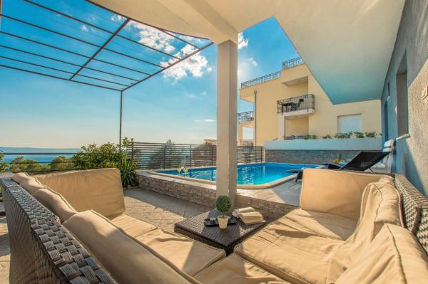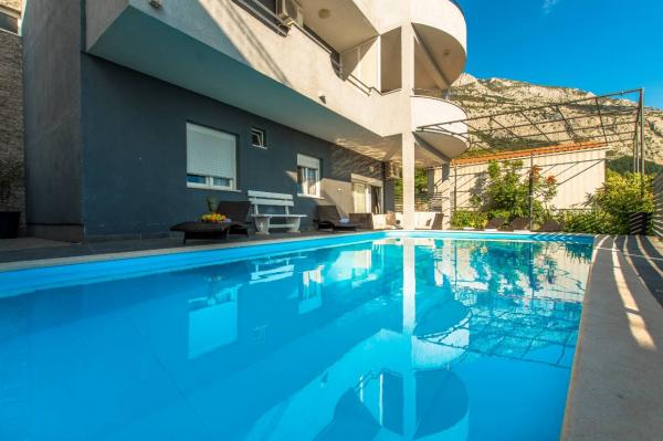 Villa Collis znajduje się w spokojnej części Makarskiej z pięknym widokiem na morze i miasto Makarska. Willa jest odpowiednia dla maksymalnie 20 osób. Apartament A14 jest w pełni wyposażony, aby zapewnić idealne zakwaterowanie dla rodzin z dziećmi lub grupy przyjaciół. A14 składa się z parteru i pierwszego piętra, składa się z 7 sypialni, 7 toalet, 2 kuchni i 2 salonów. Mieszkanie ma własny basen, który ochłodzi Cię w miesiącach letnich, wyposażony jest w ogrzewanie na chłodniejsze dni i taras z leżakami. Apartament A4 2 Składa się z 2 sypialni, 2 toalet, kuchni i salonu. Na tarasie mieszkania na drugim piętrze domu znajduje się prywatne jacuzzi z pięknym widokiem na miasto, które jest ukryte przed widokiem sąsiada. Obiekt jest w pełni klimatyzowany. Dom znajduje się około 1 km od plaży i około 2, 5 km od centrum miasta (samochodem 4 min jazdy).