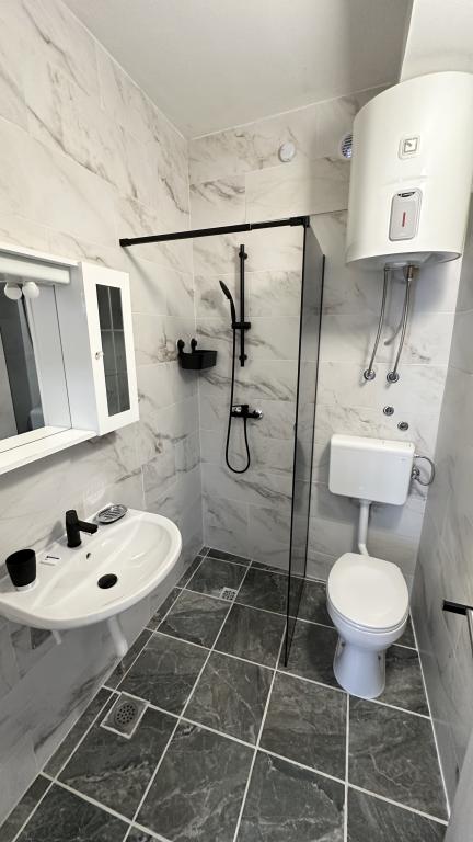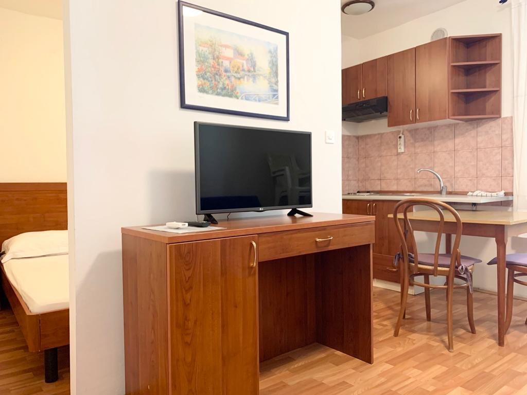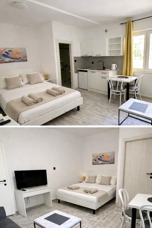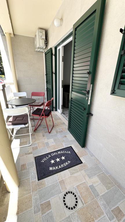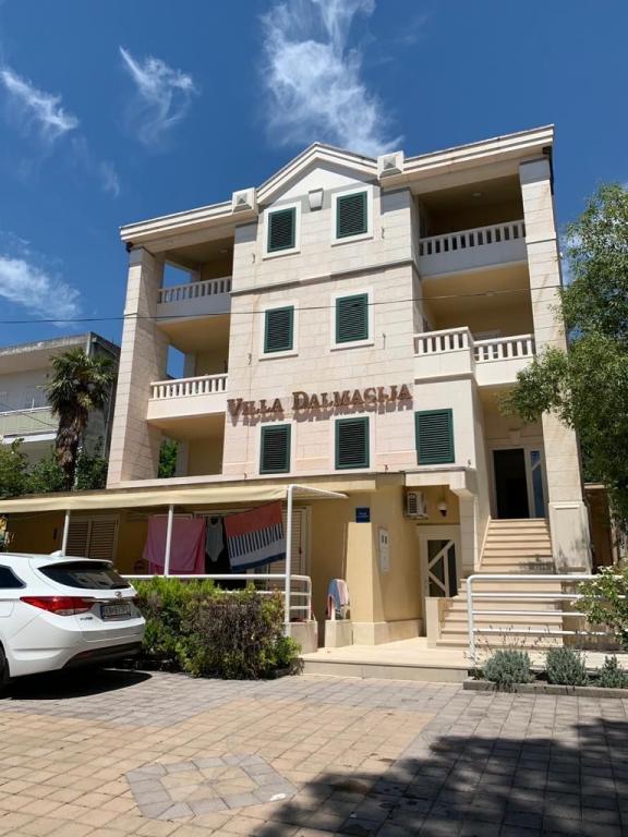 Villa Dalmacija znajduje się w Makarskiej, zaledwie 2 minuty spacerem od plaży i dysponuje bezpłatnym miejscem parkingowym. Wszystkie studia i apartamenty wyposażone są w klimatyzację, małą kuchnię z kuchenką i podstawowym wyposażeniem, małą lodówkę, łazienkę i telewizję satelitarną. Studio 2+1: jedno studio z łóżkiem francuskim i rozkładaną sofą dla 1 osoby, balkon (studio na pierwszym piętrze nie posiada balkonu). Studio 3+1: jedna sypialnia z łóżkiem francuskim i rozkładaną sofą dla 1 do 2 osób, zamknięty poddasze, wysoki parter. Apartament 2+2: sypialnia z łóżkiem małżeńskim i pokój dzienny z rozkładaną sofą dla 2 osób, taras. Apartamenty znajdują się na górnym parterze, na 2. lub 3. piętrze. Wi-Fi i parking są bezpłatne.
