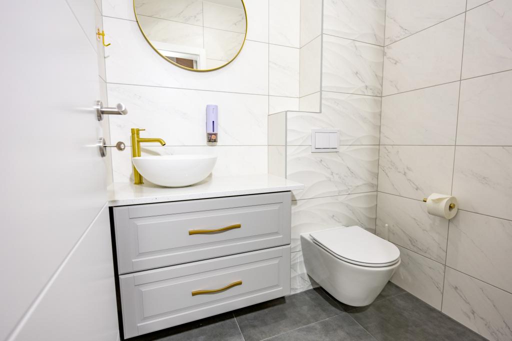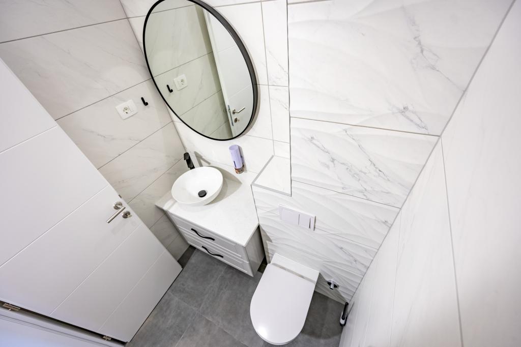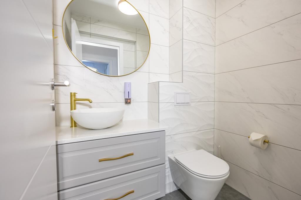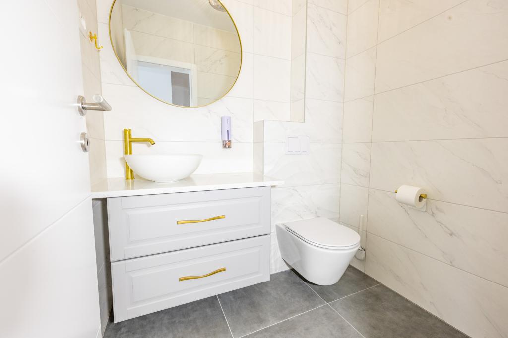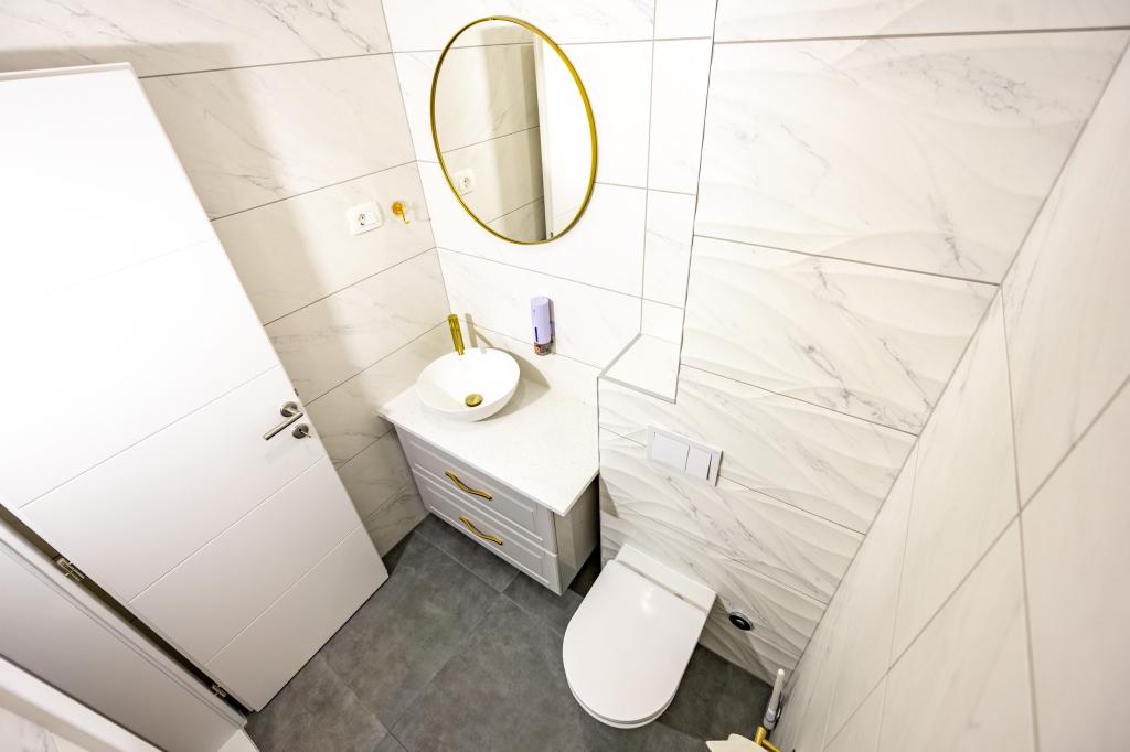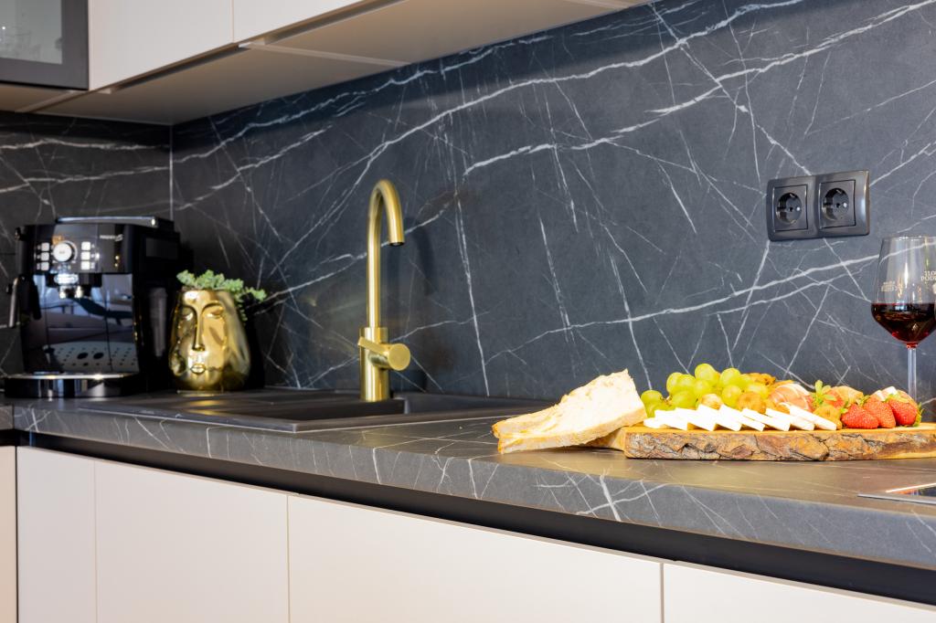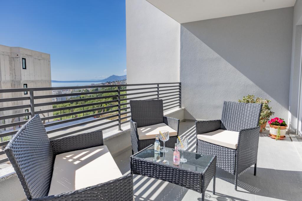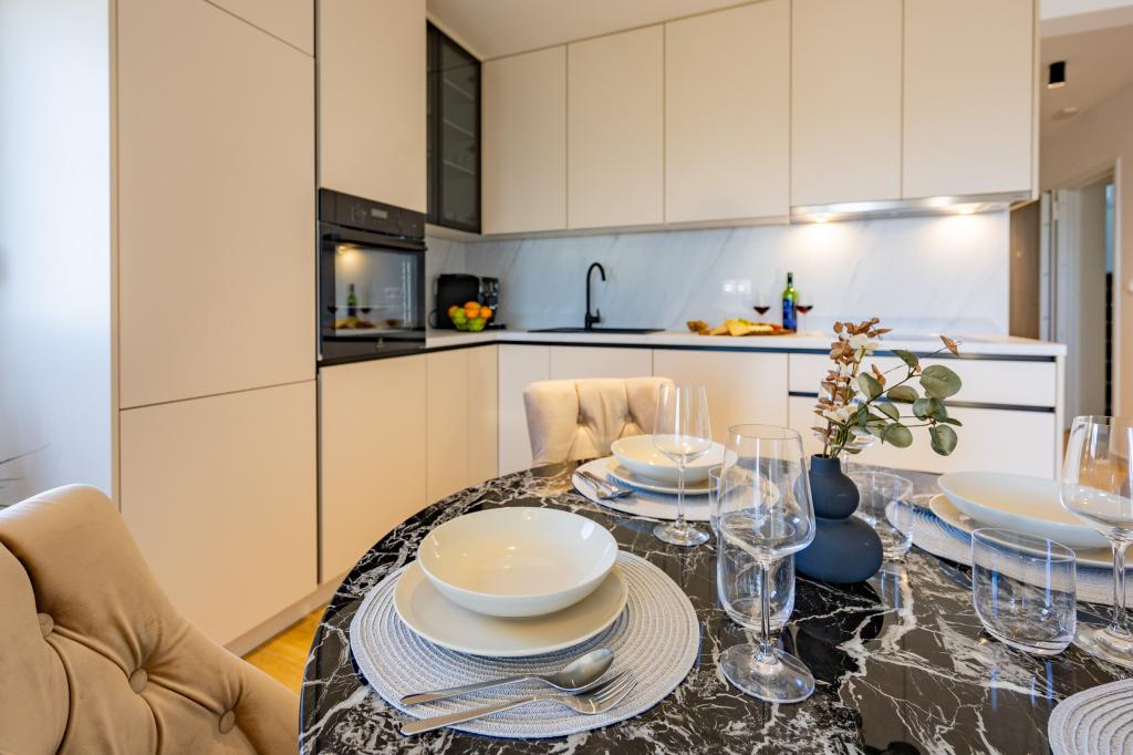 Każdy apartament emanuje nowoczesnym designem i świeżo wyremontowanym wnętrzem. W przestronnym salonie, urządzonym gustownymi meblami i nowoczesnymi detalami, poczujesz się jak w domu. Otwarta przestrzeń naturalnie łączy salon z w pełni wyposażoną kuchnią, gdzie czekają na Ciebie eleganckie blaty, wysokiej jakości sprzęty AGD i cała przestrzeń potrzebna do przygotowania ulubionych posiłków. Z salonu wychodzi się na przyjemny balkon – idealne miejsce na poranną kawę lub wieczorny relaks przy lampce wina i niezapomnianym zachodzie słońca nad Adriatykiem. Każdy apartament posiada dwie wygodne sypialnie z podwójnymi łóżkami, wyposażone w miękką pościel i mnóstwo miejsca do przechowywania, nowoczesną łazienkę i dodatkową toaletę. Apartamenty są klimatyzowane i w pełni wyposażone: TV/SAT, internet, pralka, zmywarka, ekspres do kawy i wszystko, czego potrzebujesz do przyjemnego i beztroskiego pobytu.
