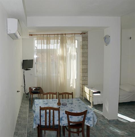 Apartamenty i pokoje mają pojemność 1-5 osób, umeblowane, wyposażone i klimatyzowane. Niektóre z nich mają widok na morze, a niektóre z widokiem na góry noclegów.