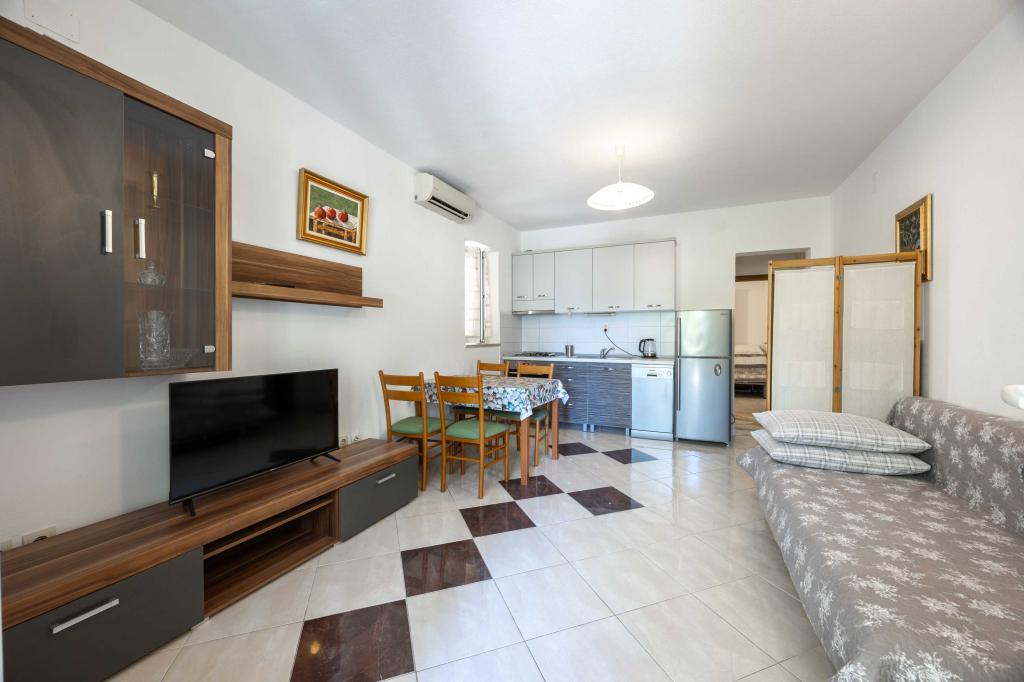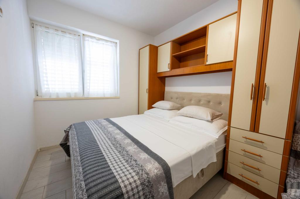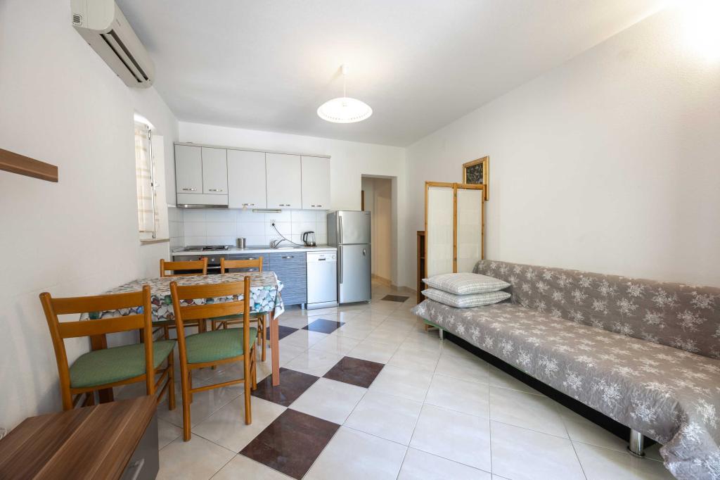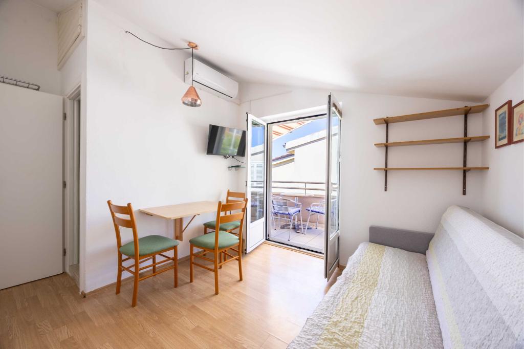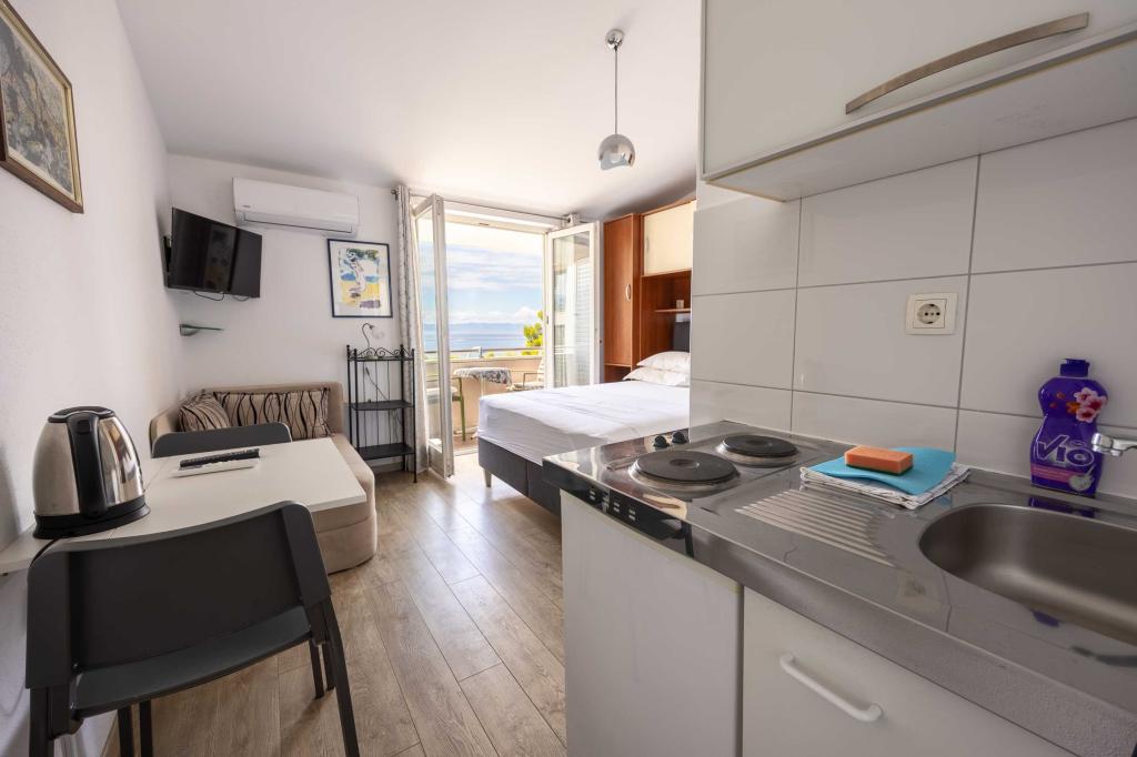 Blisko plaży w Makarskiej - 70 metrów od głównej plaży (około 1 minuty spacerem) Bezpłatny parking Bezpłatne Wi-Fi Bezpłatne korzystanie z klimatyzacji Nasze apartamenty: V1 - apartament dla 5 osób, parter, jedno duże łóżko i jedno łóżko pojedyncze w pokoju oraz jedna rozkładana sofa w salonie V2 - studio dla 3 osób, trzecie piętro, jedno duże łóżko i jedno łóżko pojedyncze, balkon z widokiem na morze V3 - studio dla 3 osób, trzecie piętro, jedno duże łóżko i jedno łóżko pojedyncze, balkon z widokiem na morze V4 - apartament dla 4 osób, trzecie piętro, jedno duże łóżko w pokoju oraz jedna rozkładana sofa w salonie, balkon z widokiem na morze V5 - apartament dla 5 osób, trzecie piętro, jedno duże łóżko i jedna mała rozkładana sofa w pokoju oraz jedna duża rozkładana sofa w salonie, balkon z widokiem na morze, kuchnia, łazienka/WC Wszystkie apartamenty mają własną kuchnię i łazienkę/WC. W sprawie cen i innych pytań prosimy o kontakt.