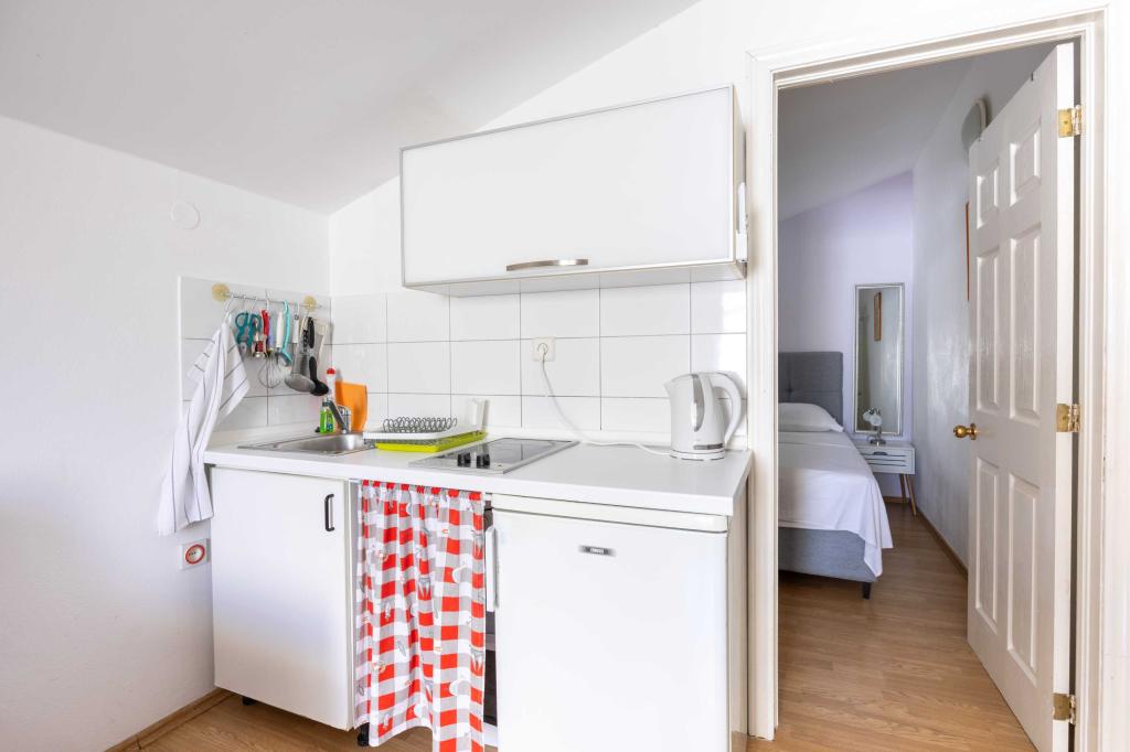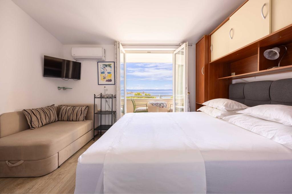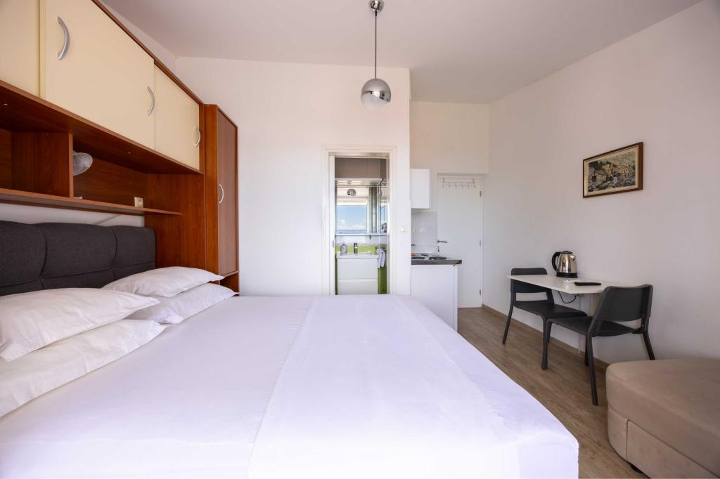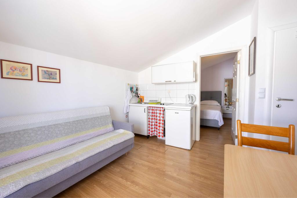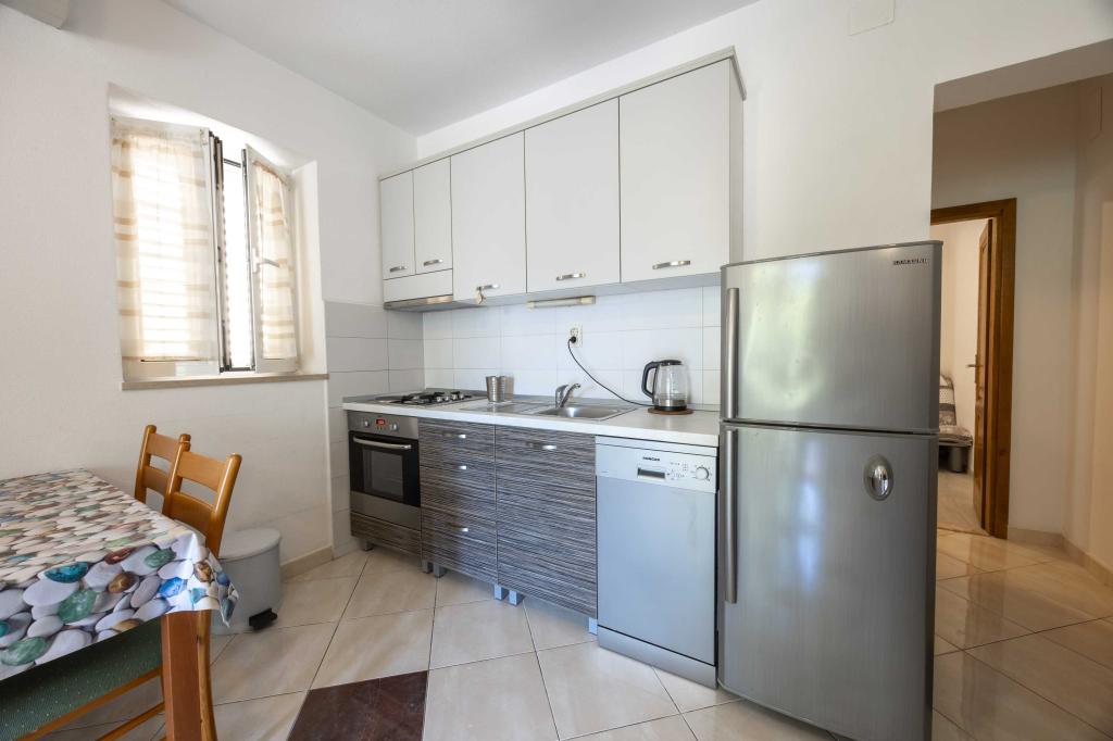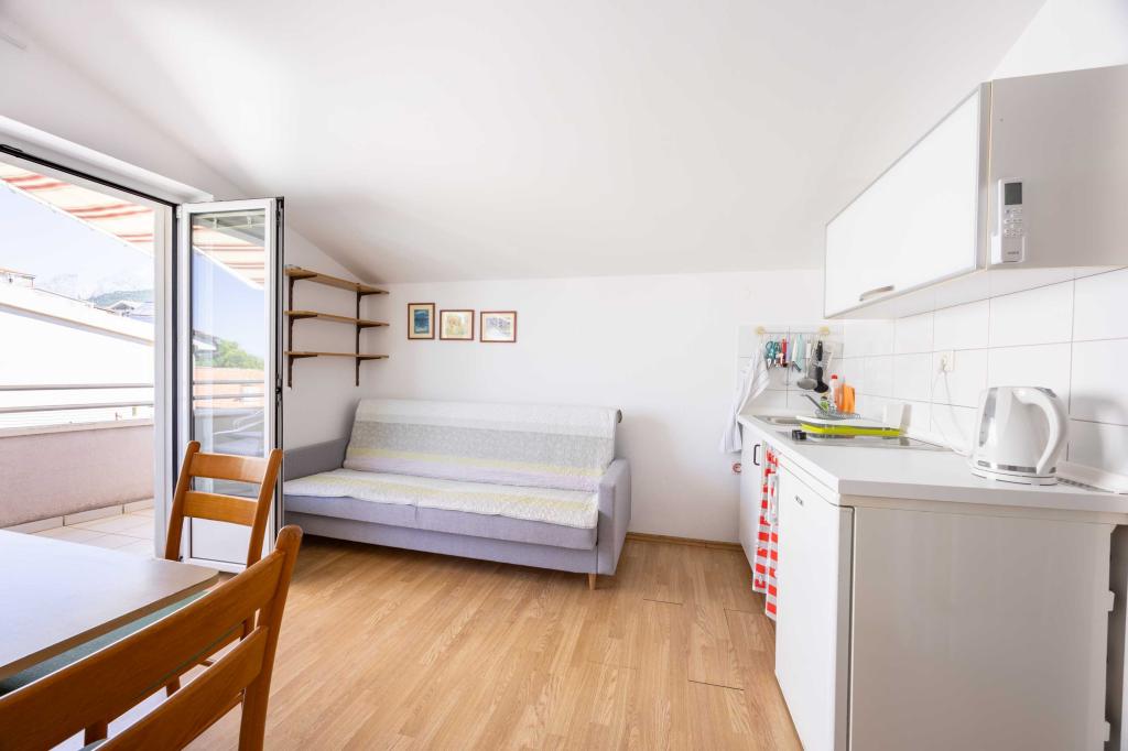 Blisko plaży w Makarskiej - 70 metrów od głównej plaży (około 1 minuty spacerem) Bezpłatny parking Bezpłatne Wi-Fi Bezpłatne korzystanie z klimatyzacji Nasze apartamenty: V1 - apartament dla 5 osób, parter, jedno duże łóżko i jedno łóżko pojedyncze w pokoju oraz jedna rozkładana sofa w salonie V2 - studio dla 3 osób, trzecie piętro, jedno duże łóżko i jedno łóżko pojedyncze, balkon z widokiem na morze V3 - studio dla 3 osób, trzecie piętro, jedno duże łóżko i jedno łóżko pojedyncze, balkon z widokiem na morze V4 - apartament dla 4 osób, trzecie piętro, jedno duże łóżko w pokoju oraz jedna rozkładana sofa w salonie, balkon z widokiem na morze V5 - apartament dla 5 osób, trzecie piętro, jedno duże łóżko i jedna mała rozkładana sofa w pokoju oraz jedna duża rozkładana sofa w salonie, balkon z widokiem na morze, kuchnia, łazienka/WC Wszystkie apartamenty mają własną kuchnię i łazienkę/WC. W sprawie cen i innych pytań prosimy o kontakt.