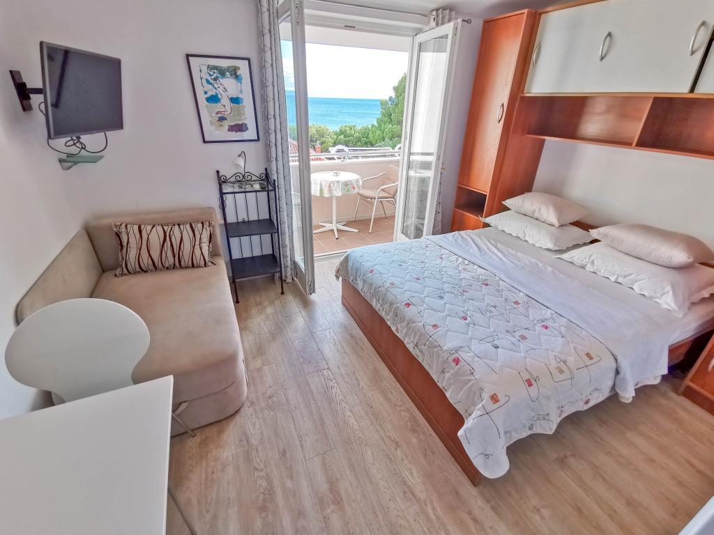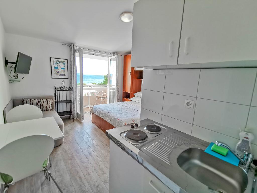 Chcesz być tak blisko plaży? Makarska - 70 metrów od głównej plaży (ok. 1 minuta pieszo) Bezpłatny parking Bezpłatny Wi-Fi Bezpłatne korzystanie z klimatyzacji Nasze apartamenty: V1 - apartament dla 5 osób, parter, jedno duże łóżko i jedno łóżko pojedyncze w pokoju oraz jedna kanapa na sofie w salonie V2 - studio dla 3 osób, trzecie piętro, jedno duże łóżko i jedno łóżko pojedyncze, balkon z widokiem na morze V3 - studio dla 3 osób, trzecie piętro, jedno duże łóżko i jedno pojedyncze łóżko, balkon z widok morze V4 - apartament dla 4 osób, trzecie piętro, jedno duże łóżko w pokoju i jedna rozkładana sofa w salonie, balkon z widokiem na morze. Wszystkie apartamenty posiadają własną kuchnię i łazienkę/WC. W sprawie cen i innych pytań prosimy o kontakt. Czekamy na Twoje przybycie
