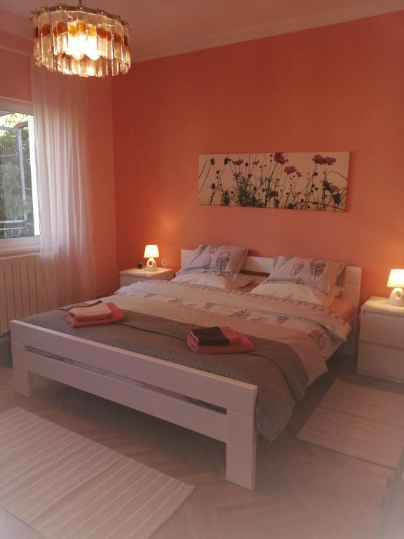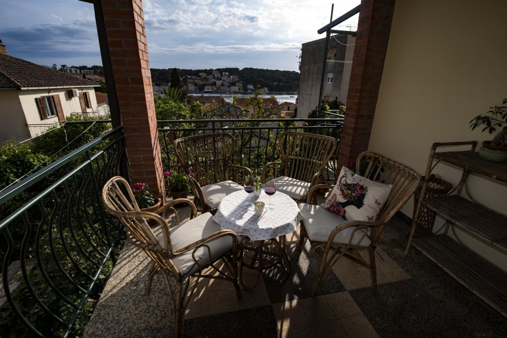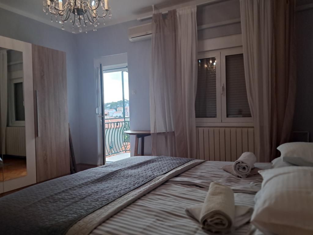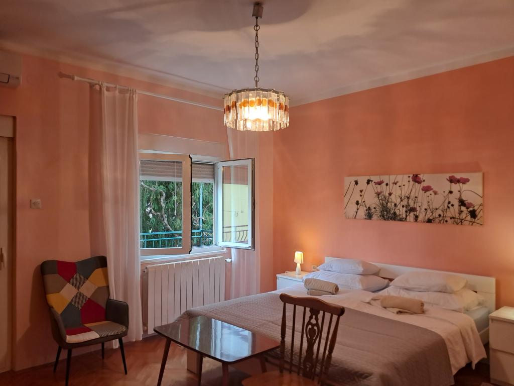 Apartament położony jest w spokojnej części miasta, blisko plaż i centrum miasta. Apartament posiada osobne wejście, duży taras z widokiem na morze i port. Apartament składa się z 3 sypialni, salonu, kuchni i 2 łazienek. Apartament jest w pełni wyposażony (sztućce i przybory kuchenne, zmywarka, lodówka z zamrażarką, toster, 2 rodzaje ekspresu do kawy, kuchenka mikrofalowa, czajnik, ręczniki, pościel, żelazko, telewizja satelitarna, Wi-Fi, pralka, suszarka do włosów, klimatyzacja). W apartamencie znajduje się również miejsce do grillowania. W miesiącach zimowych w każdym pomieszczeniu apartamentu zainstalowane jest ogrzewanie centralne. Możliwość parkowania pojazdów przy wejściu na teren obiektu na terenie ogólnodostępnym.