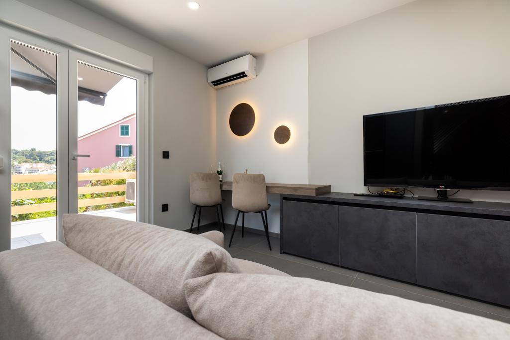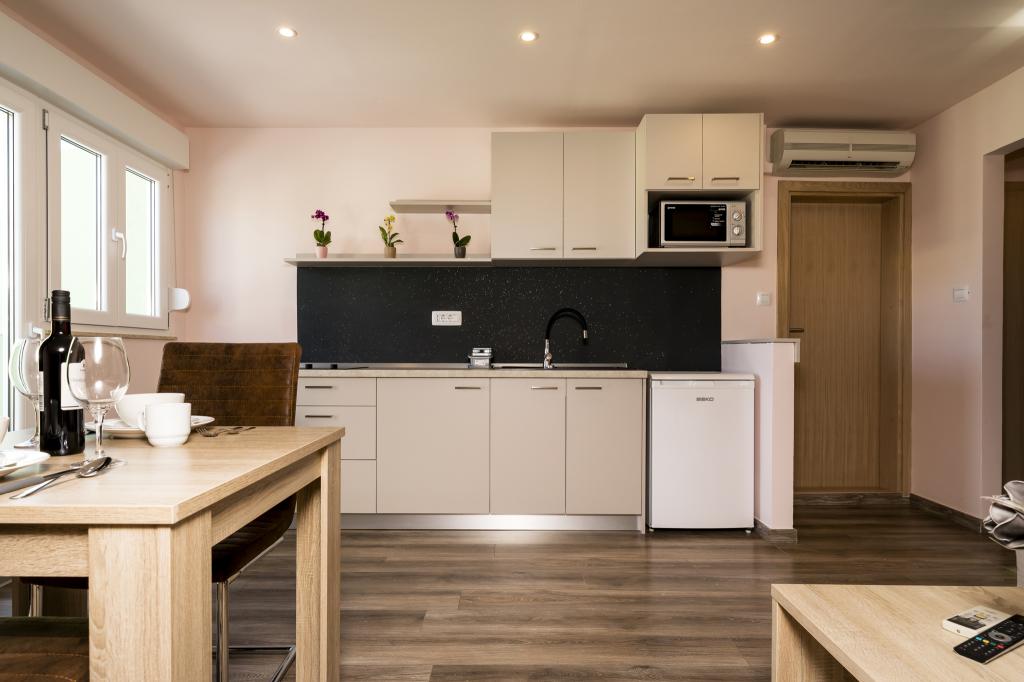 Gospodarz Adı przyjął nas bardzo uprzejmie i bardzo się o nas troszczył. Pokój, który mieliśmy był prosty, ale dobrze wyposażony we wszystko, co potrzebne. Schludnie i czysto. Apartamenty zlokalizowane są tuż przy głównej drodze, dzięki czemu można do nich łatwo dojechać samochodem, w wąskich uliczkach nie ma „tłoku”, a parking jest przestronny. Pomimo tego, że apartamenty znajdują się blisko drogi, jest tu cicho, słychać jedynie świerszcze. Śniadania na pięknym tarasie są niezwykle bogate i urozmaicone. Do głównego placu można dojść pieszo po schodach, a dotarcie do zatoki Čikat z pięknie zagospodarowaną plażą zajmuje 5-6 minut. Jeszcze raz serdecznie dziękujemy za gościnę. Naprawdę nam się podobało.