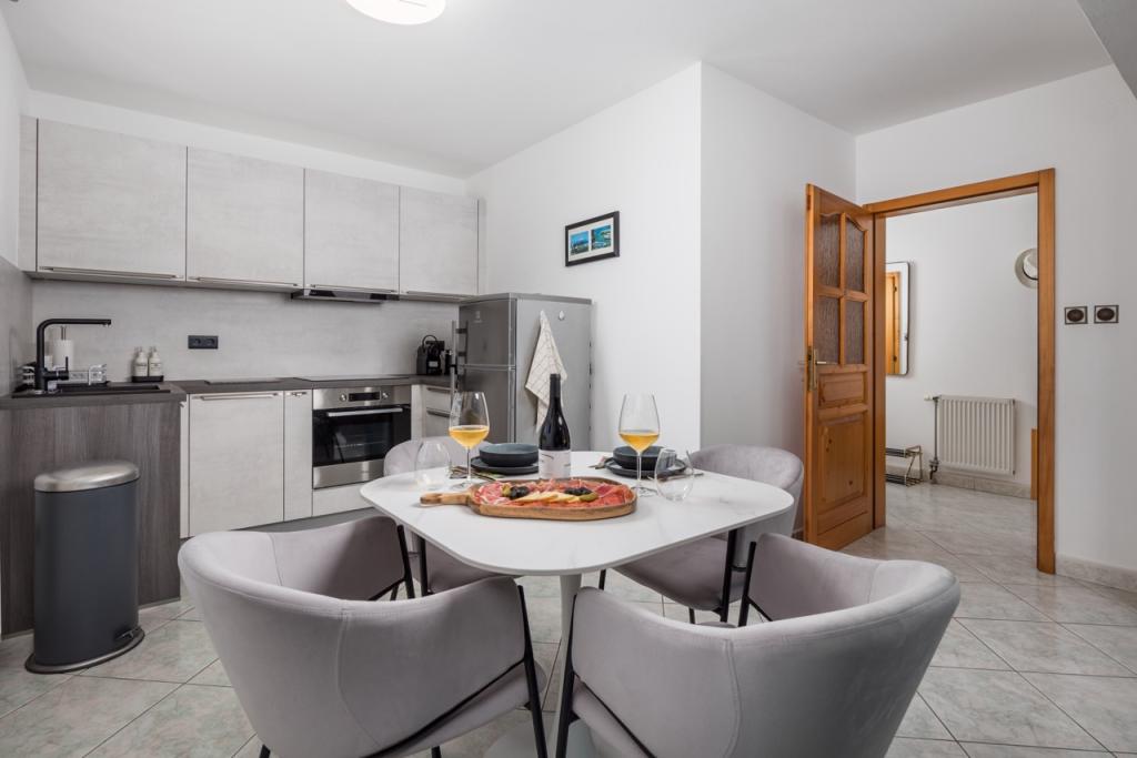 W pełni wyposażony i klimatyzowany apartament znajduje się na pierwszym piętrze domu rodzinnego. Dom położony jest na końcu małej ślepej uliczki - brak ruchu. Zapewnione jest miejsce parkingowe. Jeśli posiadasz łódź, możesz zacumować ją w małym porcie oddalonym zaledwie 100 metrów od domu. Rezerwację połączeń należy zgłosić podczas rezerwacji apartamentu. W samym porcie znajdują się także trzy bardzo dobre restauracje, znane na całej wyspie. Wystarczy 8-minutowy spacer do dobrze utrzymanej plaży. Na plaży znajduje się prysznic i kolejna restauracja. Dla Waszych najmłodszych Porat przygotował ładny plac zabaw, który znajduje się w połowie drogi od plaży od naszego domu.
