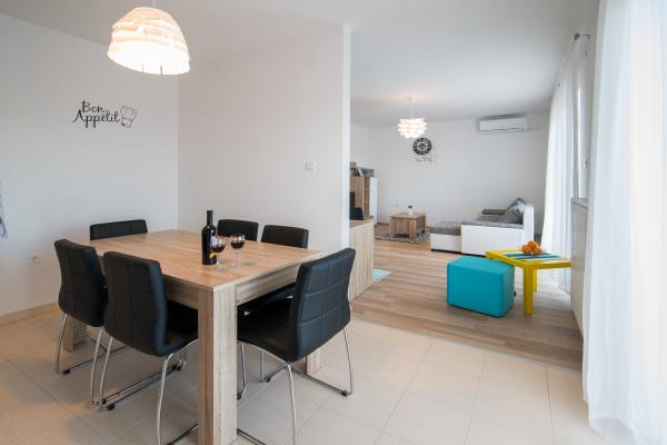 Piękny nowo wyremontowany apartament dla 6 2 osób na wyspie Krk w Rasopasno. Mieszkanie ma powierzchnię 85 m2 i posiada taras o powierzchni 35 m2, z których piękny widok na okolicę. Mieszkanie ma trzy sypialnie, przestronny salon, bardzo dobrze wyposażoną kuchnię i dwie łazienki. Jeśli szukasz na spokojny wypoczynek i relaks đeljni ci, to jest miejsce dla ciebie. Oddalony zaledwie o 200 metrów od apartamentów znajduje się restauracja, a na tej samej odległości i handlu.