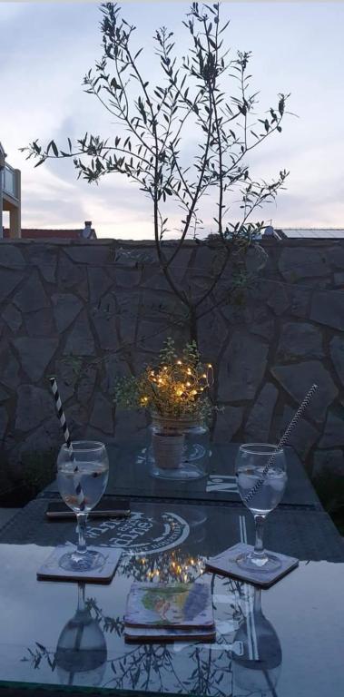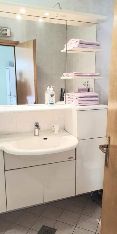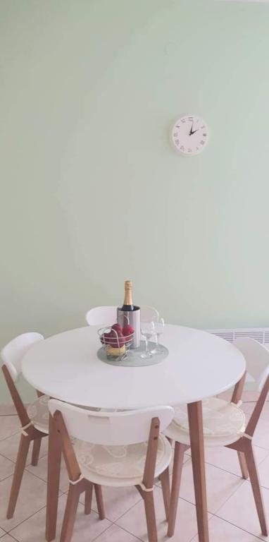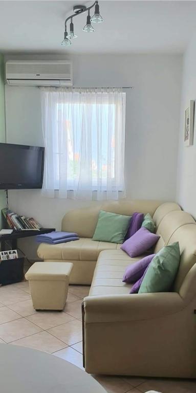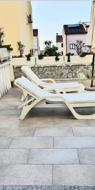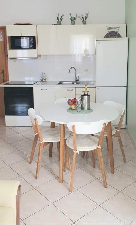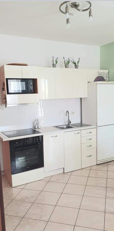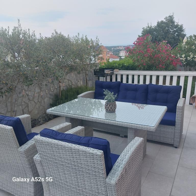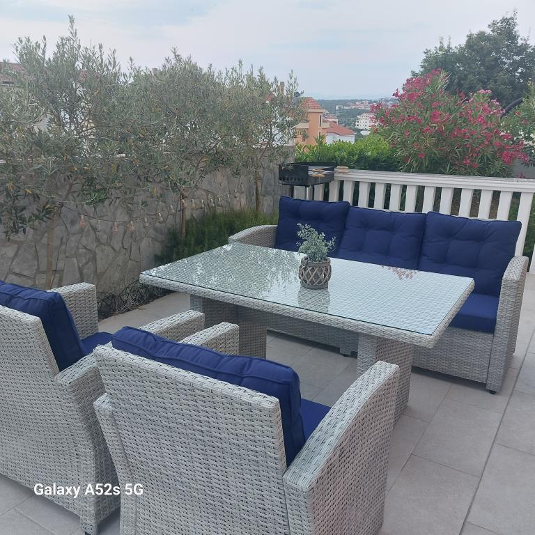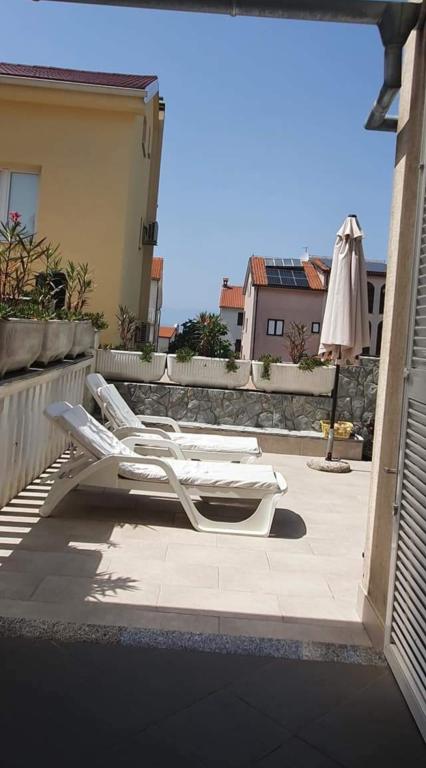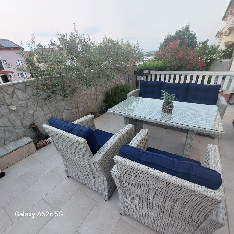 Mieszkanie znajduje się w pięknym miasteczku Malinska na wyspie Krk. Znajduje się na parterze. Składa się z sypialni z dużym łóżkiem małżeńskim (pościel w cenie, wymieniana co 7 dni) oraz salonu z rozkładaną kanapą dla dwóch osób. Przestrzeń jest otwarta, więc jadalnia i salon są ze sobą połączone. Wyposażony w dwa telewizory - jeden w salonie z mini linią oraz drugi w sypialni. Apartament posiada łazienkę z prysznicem (3 ręczniki na osobę), pralkę oraz kuchnię z kuchenką mikrofalową, kuchenką, ekspresem do kawy i dużą lodówką z zamrażarką 50 litrów i zmywarką. Parking przed apartamentem. Najcenniejszą częścią mieszkania jest duży taras (35m2) z wygodnymi krzesłami i leżakami, na którym można cieszyć się popołudniowym odpoczynkiem. Wychodząc na taras przejdź przez specjalny kącik ze stołem i dwoma krzesłami (loggia), jeśli chcesz napić się kawy z otwartym widokiem na taras i częściowym widokiem na morze, ukrytym przed słońcem.