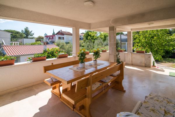 śródziemnomorskiej roślinności, odurzający zapach morza, ciszy i spokoju, blisko do plaży, restauracji i sklepów najlepiej opisać miejsce, gdzie jest nasze mieszkanie. Położony 200 m od plaży Hotel Malin i 1000m od centrum miasta jest idealnym miejscem na rodzinne wakacje. Apartament posiada prywatny taras, wspólny ogród i parking. Posiada własne wejście, dziedziniec, parking i wszystkie możliwości spokojnej i intymnej wakacje. Mieszkanie 4 1 z dwóch sypialni zapewniając zakwaterowanie dla 5 osób. Znajduje się na drugim piętrze. Posiada balkon z widokiem na morze. Apartament jest klimatyzowany, posiada telewizję satelitarną i bezprzewodowy dostęp do Internetu.