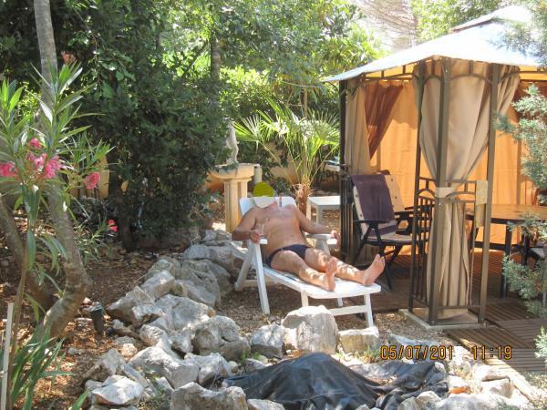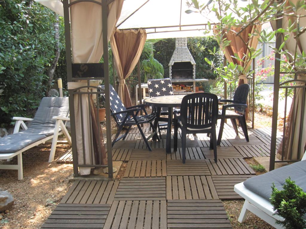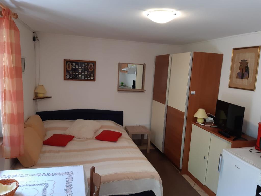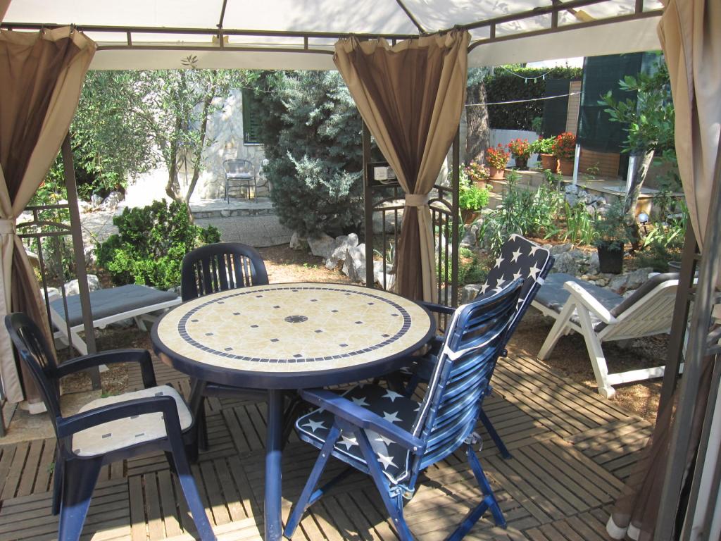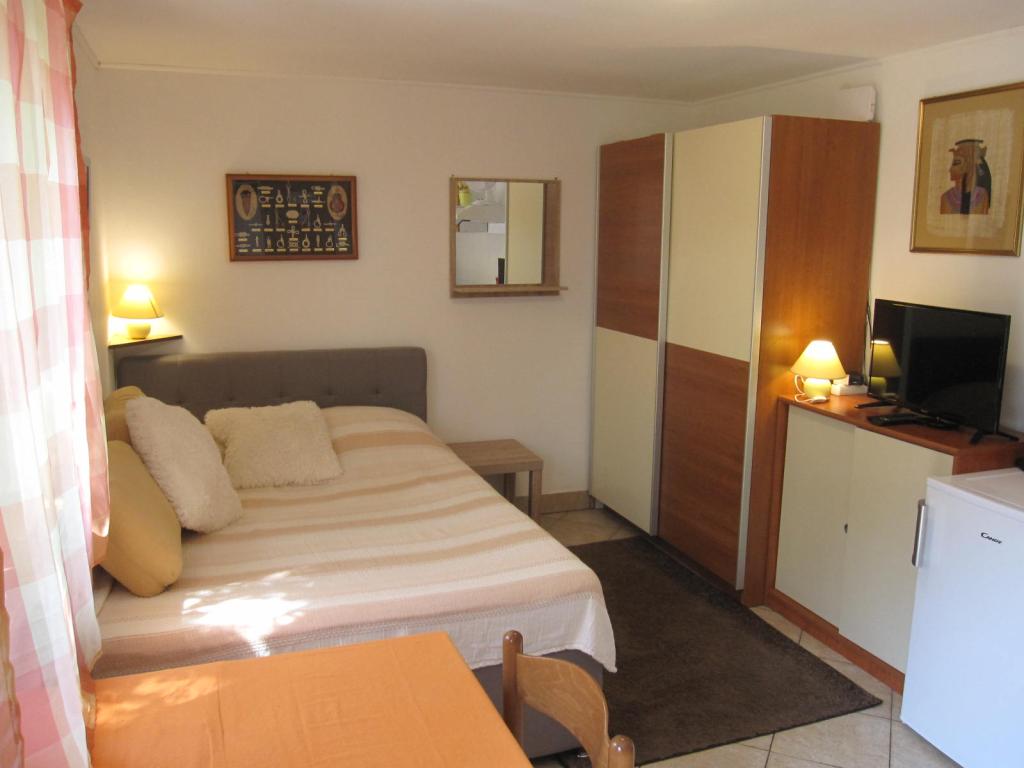 Apartament typu studio dla 2 osób, w spokojnej części miasta, 150 metrów od morza, z ogrodem lub tarasem w ogrodzie. Apartament posiada wyposażoną kuchnię (kuchenka, lodówka z małym zamrażalnikiem, czajnik elektryczny, naczynia kuchenne, sztućce...), część sypialną z wygodnym łóżkiem, łazienkę z prysznicem, telewizor, Wi-Fi, klimatyzację... Do dyspozycji Gości są meble ogrodowe, ręczniki i pościel. Parking jest bezpłatny. Obiekt położony jest 3 minuty spacerem od zadbanych, zacienionych plaż. Sklepy, restauracje i kawiarnie znajdują się w odległości 150 metrów. Do centrum miasta z portem można dojść pieszo wzdłuż morza w 10-15 minut. Przyjazd od godziny 13:00, wyjazd do godziny 10:00.