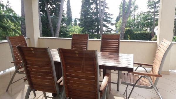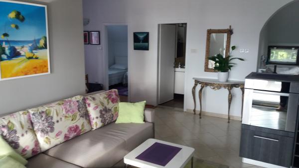 Znakomity, nowoczesny apartament w pięknym domu blisko plaży. Mieszkanie jest bardzo dobrze wyposażone i nieskazitelnie czyste. Taras z widokiem na morze, otoczony sosnami, znajduje się nad pięknym dziedzińcem domu. Łóżka bardzo wygodne, klimatyzacja w każdym pokoju, moskitiery w oknach. Samochód można zaparkować na podwórku. Plaża jest bardzo blisko - żwirowa i betonowa, posiada prysznic, toaletę i kawiarnię. W pobliżu są inne plaże, więc każdy znajdzie coś dla siebie. Gospodarze to niezwykle mili i życzliwi ludzie, mieszkają na parterze domu. Szczególnie zaprzyjaźnili się z naszym najmłodszym 2,5 letnim synem. Przygotowali dla nas bardzo smaczny obiad - grillowana ryba z sałatką. W sumie byliśmy bardzo zadowoleni!