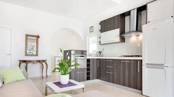 Piękny spokojny wypoczynek w górnym apartamencie z widokiem na morze. Taras jest dobrze zacieniony. Drodzy pomocni właściciele, apartament czysty, dobrze wyposażony. Kawałek morza (50m) gdzie można bezpośrednio popływać i od końca czerwca działa tu bar. Doskonała restauracja 400 m dalej (wzdłuż morza). Dziękujemy i chętnie wrócimy ponownie.