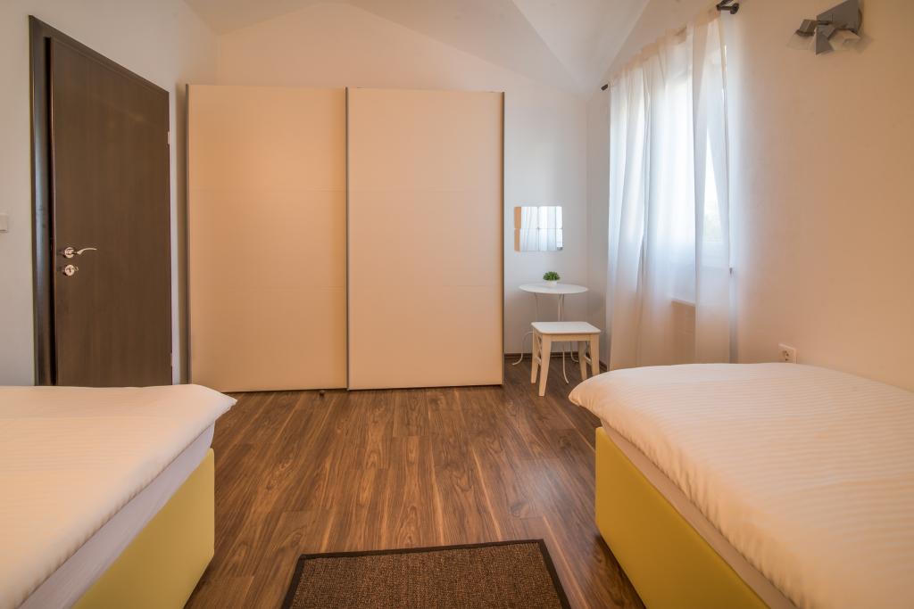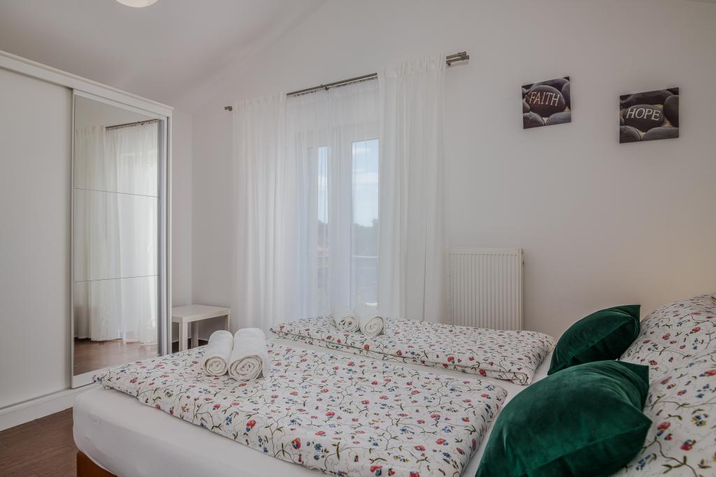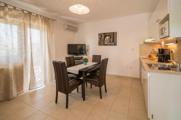 Śródziemnomorskiej roślinności, odurzający zapach morza, ciszy i spokoju, blisko plaży, restauracji i sklepów najlepiej opisać miejsce, gdzie nasze apartamenty. 250 m od pięknej zatoce rowu i 1500m od centrum Malinska idealnym miejscem na rodzinne wakacje. Na parterze naszego domu są dwa apartamenty i zapewniają zakwaterowanie dla 4-5 osób. Każdy apartament posiada taras, wspólny ogród i parking. W kolejnym domu jest nowe i nowoczesne apartamenty z dwiema sypialniami i trzema tarasami, który oferuje zakwaterowanie dla 6 osób. Ma własne wejście, dziedziniec, parking i wszystkie możliwości w domu spokojnej i kameralnej. Apartamenty są wyposażone w telewizję satelitarną i bezprzewodowy dostęp do Internetu.