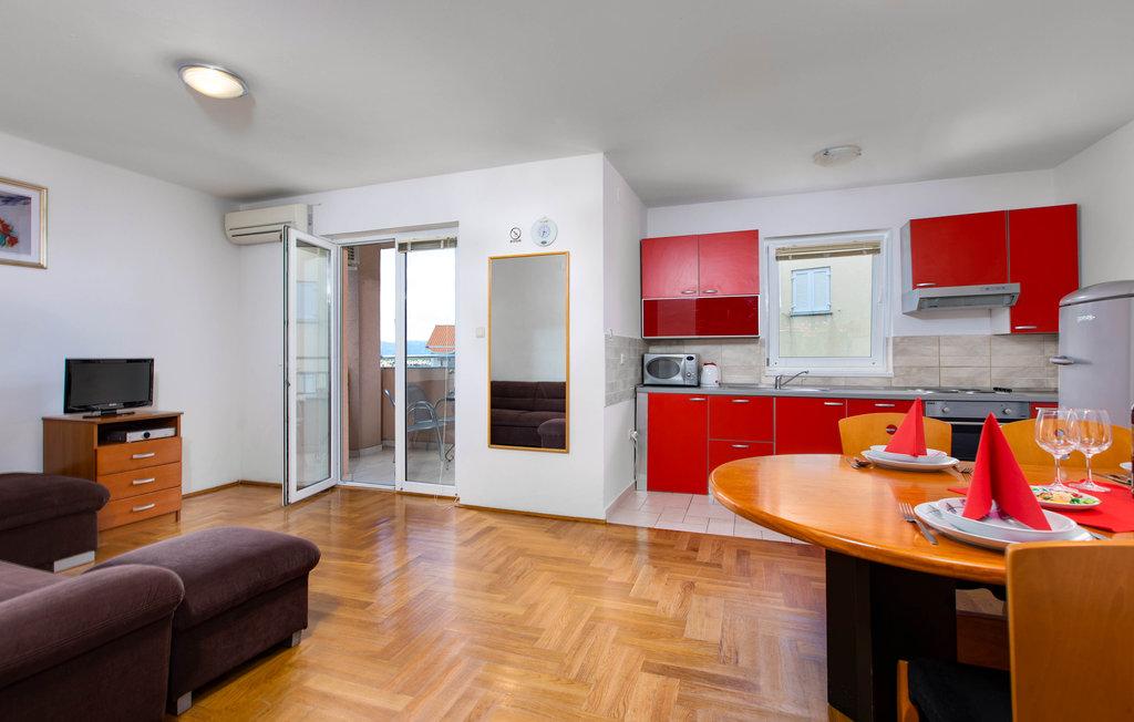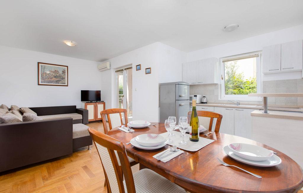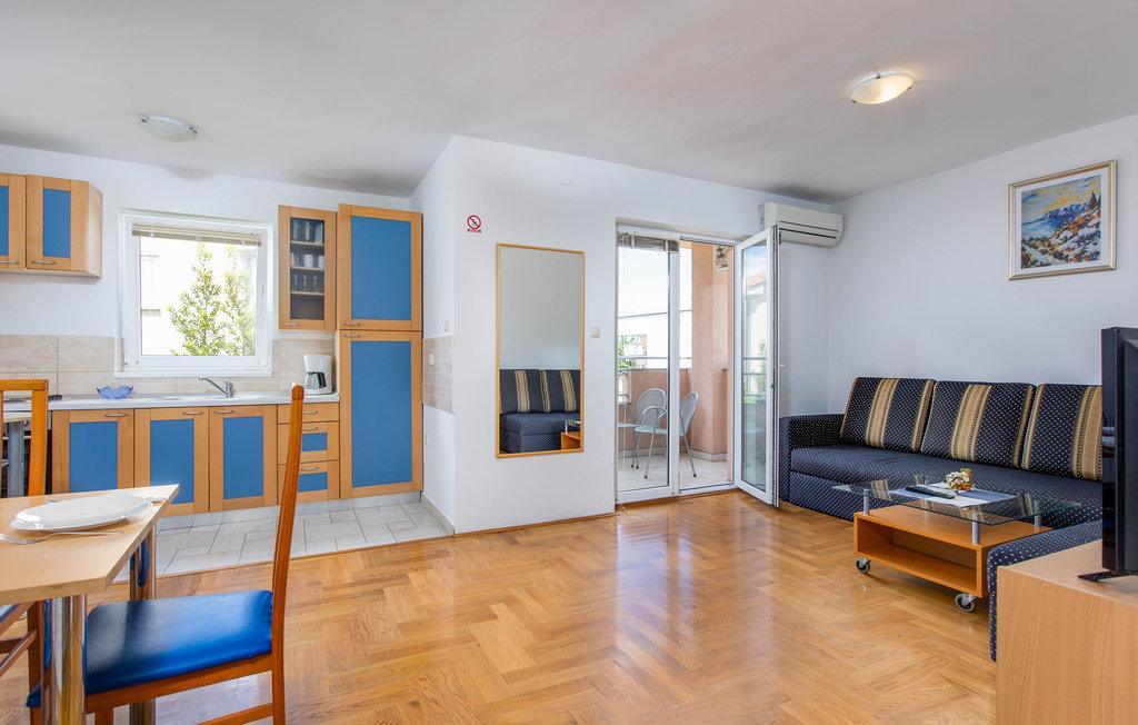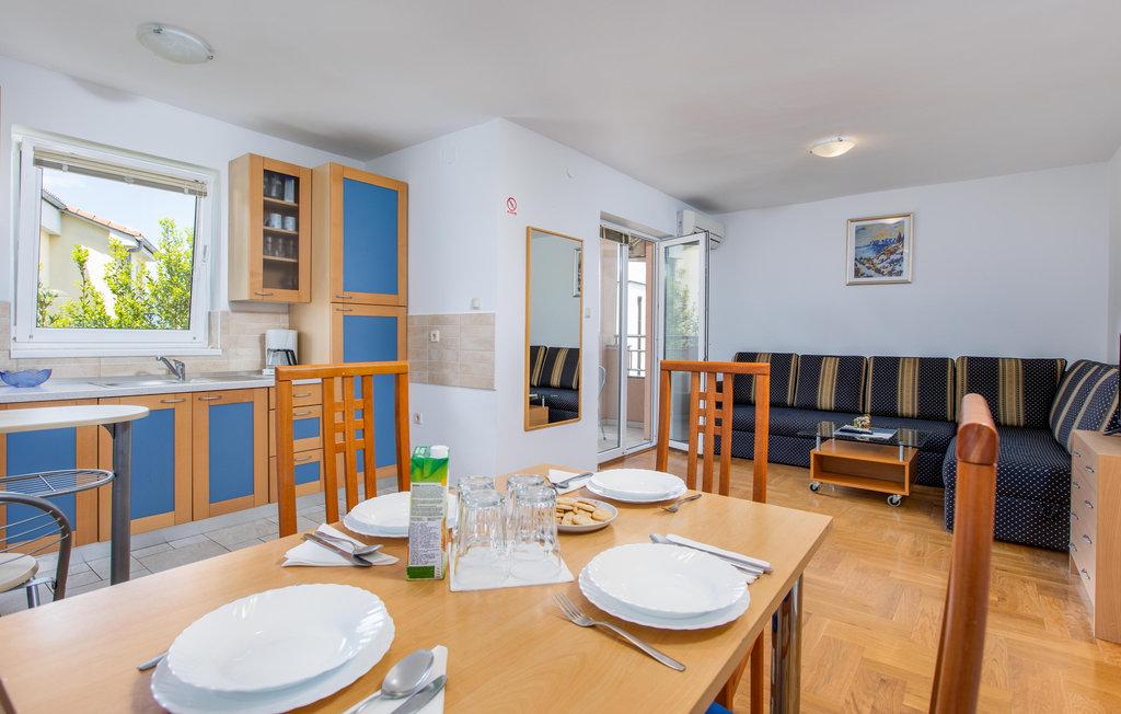 - Apartamenty 62 m2 z balkonami, w pełni umeblowane z 2 sypialniami, salonem, kuchnią, jadalnią, kabiną prysznicową i toaletą dla 4 osób; klimatyzacja, wifi, grill, parking, TV-sat, Apartamenty 550 metrów nad centrum- 10 minut spacerem, 650 metrów od plaży - 15 minut spacerem.