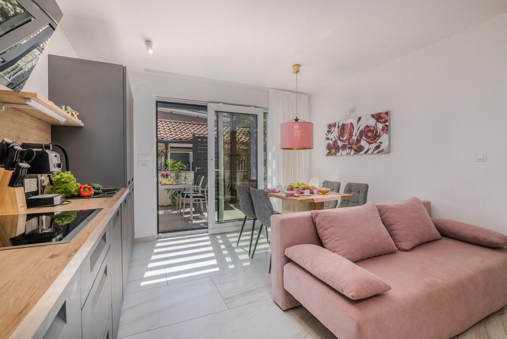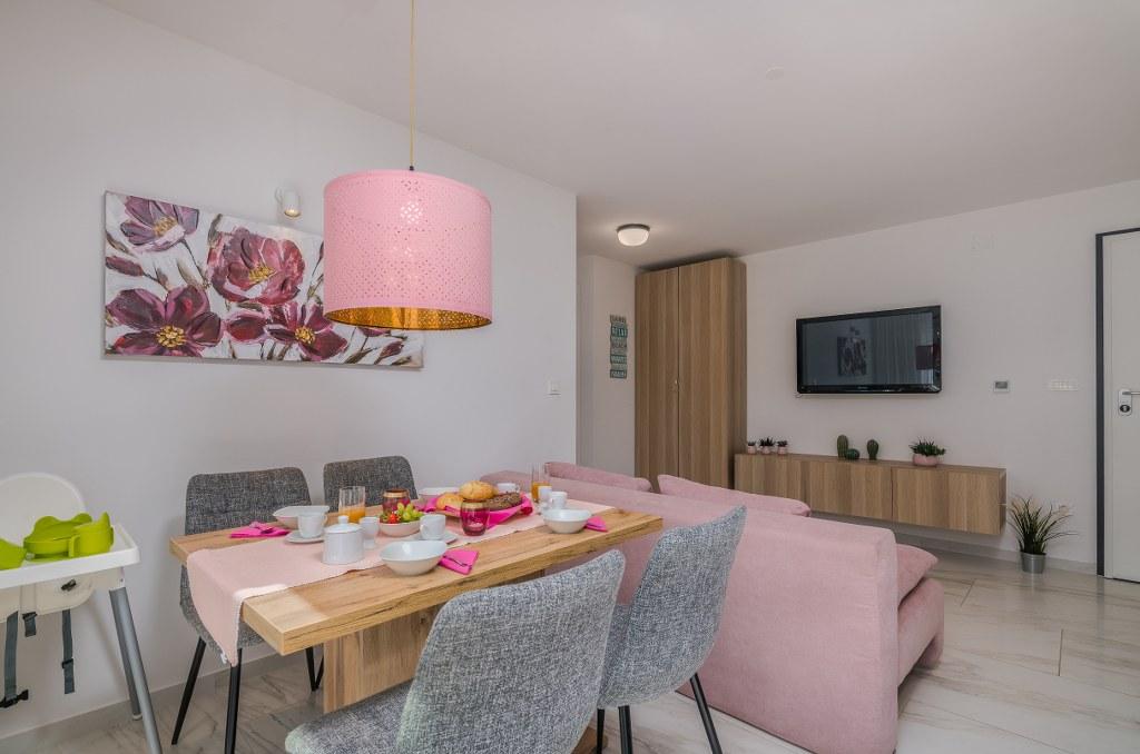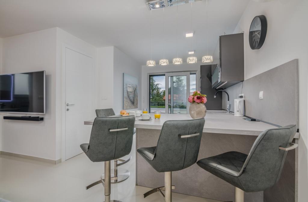 Apartamenty Elle Luxury znajdują się w Vantačići, 120 metrów od plaży z naturalnym cieniem. Są nowocześnie umeblowane iw pełni wyposażone, aby Twoje wakacje były relaksujące i przyjemne. Tym samym wszystkie apartamenty wyposażone są w pralki i zmywarki, klimatyzatory, ogrzewanie podłogowe, bezprzewodowy Internet oraz telewizję satelitarną. Apartamenty na wyższych piętrach posiadają zadaszone balkony z widokiem na morze, a te na parterze posiadają własny taras. Do każdego mieszkania przynależy jedno miejsce parkingowe na ogrodzonym podwórzu.