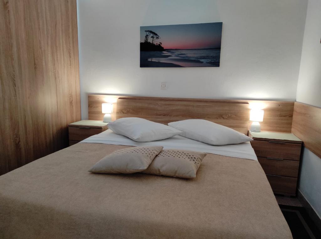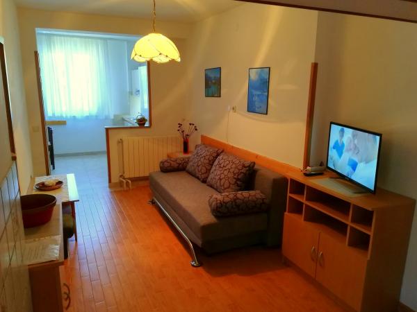 Apartamenty znajdują się 200 metrów od morza iw tej samej odległości od centrum. Dom położony jest w spokojnej części miasta. Wszystkie pokoje mają parking na podwórku i są monitorowane.