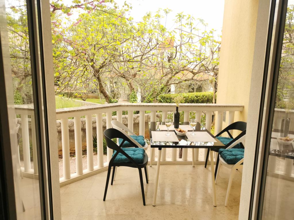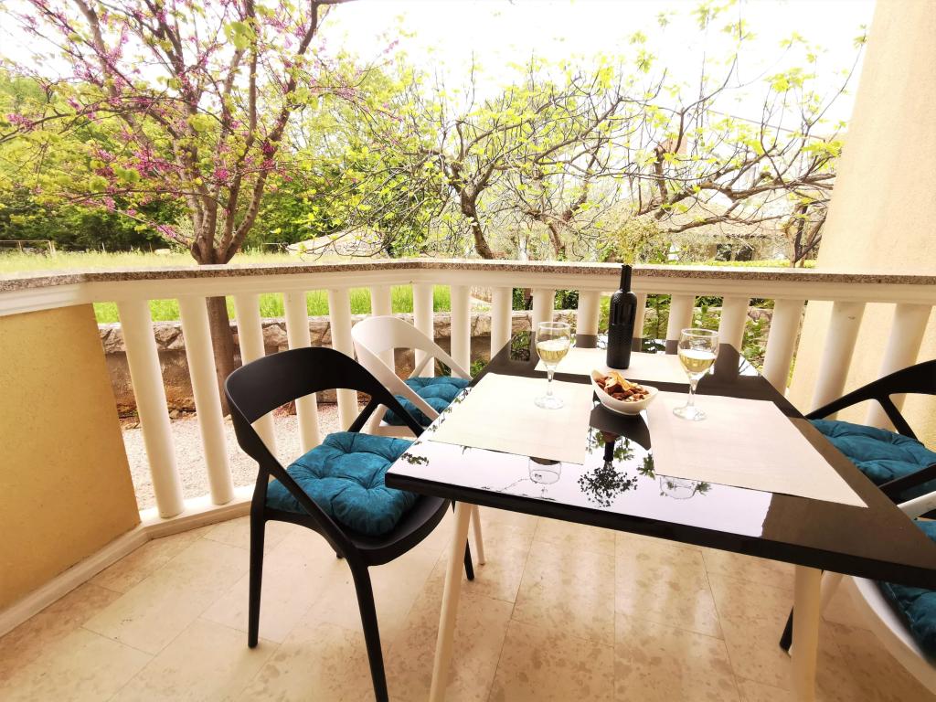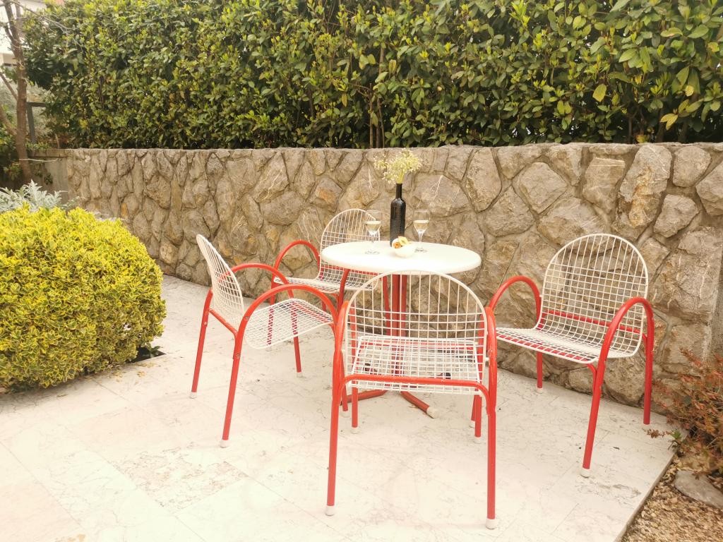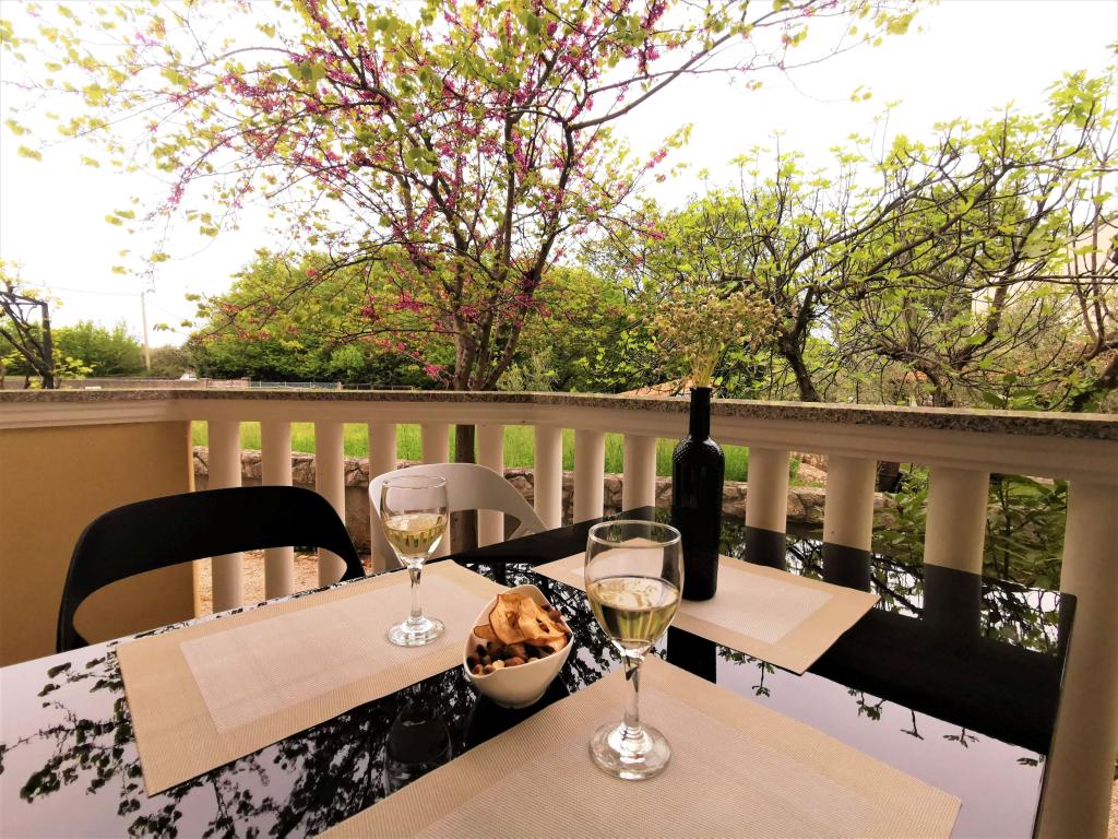 Dwa w pełni umeblowane apartamenty z oddzielnymi wejściami i strzeżonymi miejscami parkingowymi na własnym zamkniętym podwórku i naturalnym cieniu. Każdy apartament jest klimatyzowany i posiada taras. Oba wyposażone są w WiFi, programy satelitarne, kuchenkę mikrofalową, lodówkę z zamrażarką, toster, ekspres do kawy z filtrem, podgrzewacz wody, suszarkę do włosów, pościel i ręczniki. W oknach wszystkich sypialni znajdują się moskitiery. Do najbliższej plaży można dojść w 10 minut, a do centrum Malinskiej można dojść w 40 minut. Apartamenty są częścią rodzinnego domu w spokojnej części Malinskiej i są otoczone zielenią.