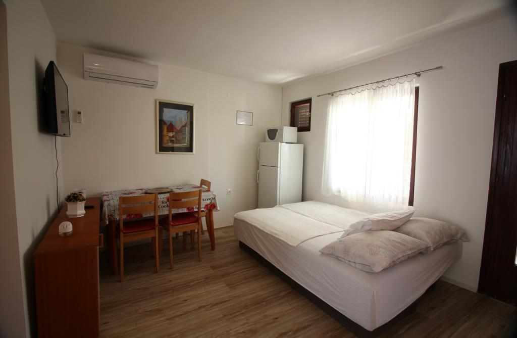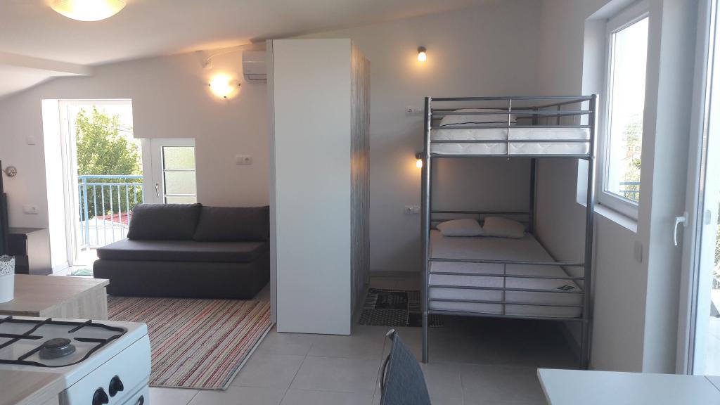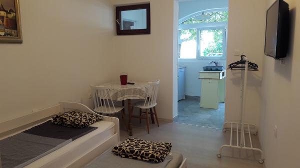 W cichej i zielonej części Svetog Vid znajduje się prywatny bliźniak z w pełni i funkcjonalnie wyposażonymi apartamentami dla 2-6 osób. Wszystkie apartamenty posiadają własne tarasy, z których wchodzi się do apartamentu. Właściciele mieszkają w swoim mieszkaniu na parterze domu. Na podwórzu znajduje się duży stół z ławami i grillem. Parking znajduje się na podwórzu, w cieniu pod dębami. Do centrum Malinskiej można dojść pieszo w 15 minut, a na pierwszą plażę w 20 minut. W okolicy znajduje się wiele pięknych plaż, deptaków wzdłuż morza i ścieżek rowerowych. Dla spragnionych dobrej zabawy w pobliżu znajduje się klub nocny Diamant (ok. 2 km). Klimatyzacja, opłata klimatyczna, rejestracja, sprzątanie końcowe, telewizja satelitarna, pościel, ręczniki, ściereczki, detergenty, gąbki, papier toaletowy i mydło są wliczone w cenę, a parking i Wi-Fi są bezpłatne. KOSZTY DODATKOWE: - Zwierzę = 5 €/dzień - 1 pies - Pralnia = 3 €, - Ogrzewanie od 4-6 €/dzień - Tylko 1 noc jest 30% DROŻSZA