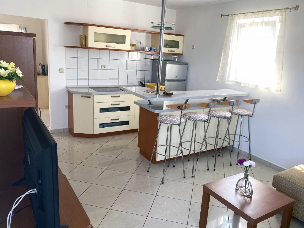Nowoczesne i bogato urządzone apartamenty w rodzinnym domu w bardzo spokojnej części Malinskiej. Dom położony jest blisko centrum miasta, odległość od rynku miejskiego i centrum miasta wynosi zaledwie 5 minut. Wzdłuż wybrzeża w Malinskiej, od samego centrum, urządzono i wyposażono kąpieliska; plaże żwirowe i piaszczyste, odpowiednie dla małych dzieci lub zaciszne zatoczki do wypoczynku; każdemu daje się wybór. Wszystkie nasze apartamenty przeznaczone są dla 4 osób (na życzenie 5-ta osoba). Posiadają oddzielną sypialnię, pokój dzienny, kuchnię, toaletę, przedpokój oraz balkon lub taras. Apartamenty na parterze mają dostęp do ogrodu, a apartamenty na pierwszym piętrze domu posiadają duży balkon z widokiem na morze. W ogrodzie znajduje się grill i altana, z której można korzystać. Wszystkie apartamenty posiadają strzeżony parking dla wszystkich gości. Apartamenty na pierwszym piętrze domu wyposażone są w klimatyzację, podobnie jak apartament ID 3470 na parterze. Wszystkie apartamenty wyposażone są w telewizję satelitarną LCD oraz bezpłatne Wi-Fi. Apartamenty na parterze wyposażone są w zmywarkę. Pralka dostępna jest na życzenie i za dodatkową opłatą.