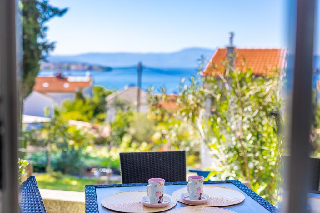 Dwa dobrze wyposażone i urządzone apartamenty na parterze domu w spokojnej części Malinskiej, z bezpiecznym, częściowo zadaszonym parkingiem, zadaszonymi tarasami z widokiem na morze, zagospodarowanym ogrodem z roślinnością śródziemnomorską, przydomowym grillem. Apartamenty są klimatyzowane, TV LCD SAT, Internet Wi-Fi. Wyposażone kuchnie - kuchenka mikrofalowa, przelewowy ekspres do kawy, toster, zmywarka.