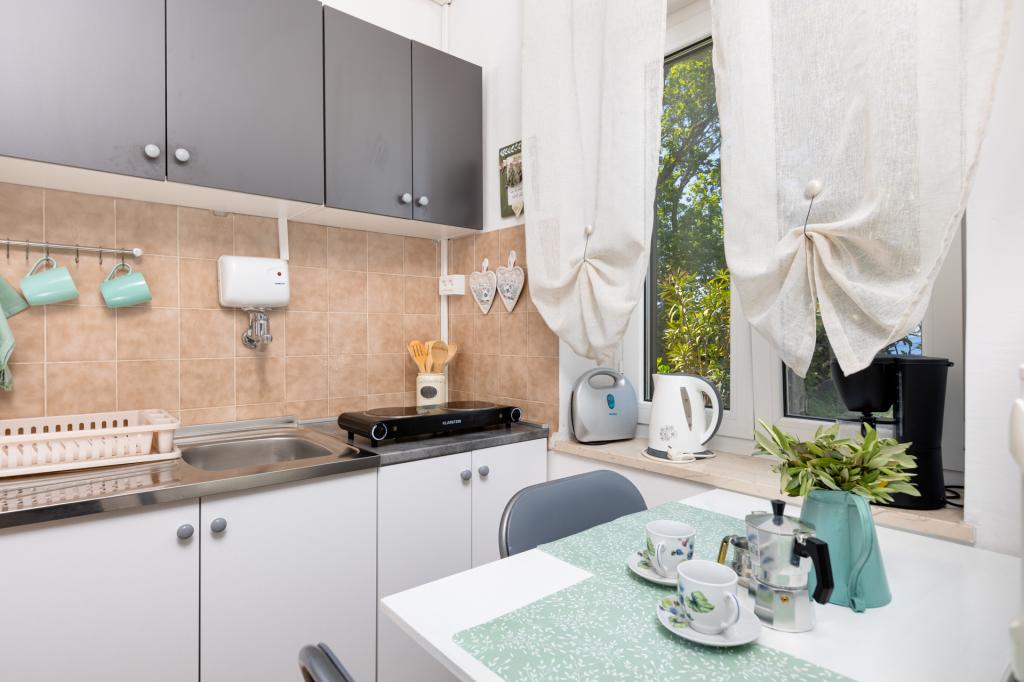 Byliśmy tam już drugi raz i na pewno przyjedziemy jeszcze raz. Zakwaterowanie jest idealnie czyste, bardzo dobrze wyposażone i urządzone, gospodarze są niesamowici. Widok na morze z werandy, idealny do wieczornego siedzenia. Bezproblemowe parkowanie. Szczególnie polecam jeśli lubisz zwierzęta, psy i koty Dotarcie do wody zajmuje kilka minut, częściowo po schodach i/lub pod górę. Niedaleko obiektu znajduje się także piekarnia, sklep i bar przy plaży. Najbliższa restauracja ok. 10 minut na piechotę, do skraju miasta (z absolutnie fantastyczną restauracją „Primorska Koliba”) około 15 minut.