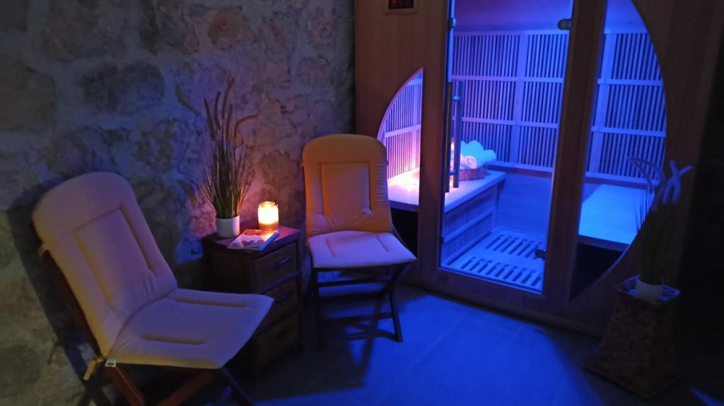Holiday Home King's Lodge to drewniany dębowy dom położony w Hrvatsko Zagorje z widokiem na górę Ivanščica ... Do Państwa dyspozycji: - 3 oddzielne sypialnie - 2,5 łazienki - przestronny salon z kominkiem - sauna - grill z zadaszonym tarasem - pokój dla spotkania towarzyskie i zabawy (rzutki, bilard, PS, gry planszowe...) - kominek zewnętrzny - plac zabaw dla dzieci - kącik dla dzieci i kącik do czytania
