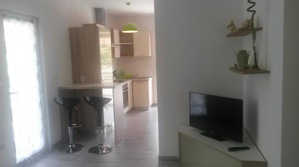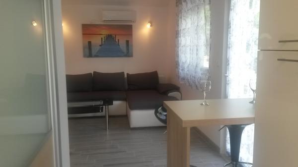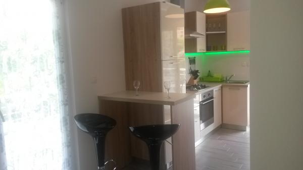 P i P nowo wybudowane nowoczesne apartamenty. Pojemność zakwaterowania dla dwóch osób plus dwa dodatkowe łóżka (rozkładana sofa). Kuchnia wyposażona jest we wszystkie niezbędne urządzenia kuchenne: kuchnia sztućce i gotowania, czajnik elektryczny, lodówka, ekspres do kawy. Goście Bezpłatna oferta: bezprzewodowy dostęp do Internetu, sejf, powietrze, czysta pościel i ręczniki, papier toaletowy, mydło, koce, parking, korzystanie z odkrytym grillem i ogród. Mieszkanie jest w otoczeniu lasów sosnowych i tarasu piękny widok ślimaka morskiego. Odległość od sąsiednich domów. Jest to idealne miejsce na rodzinne wakacje. Plaża znajduje się 5 minut spacerem, odpowiednie dla małych dzieci, i obejmuje wszystkie urządzenia do rekreacji.