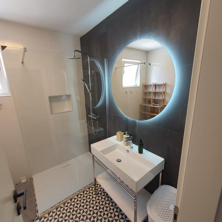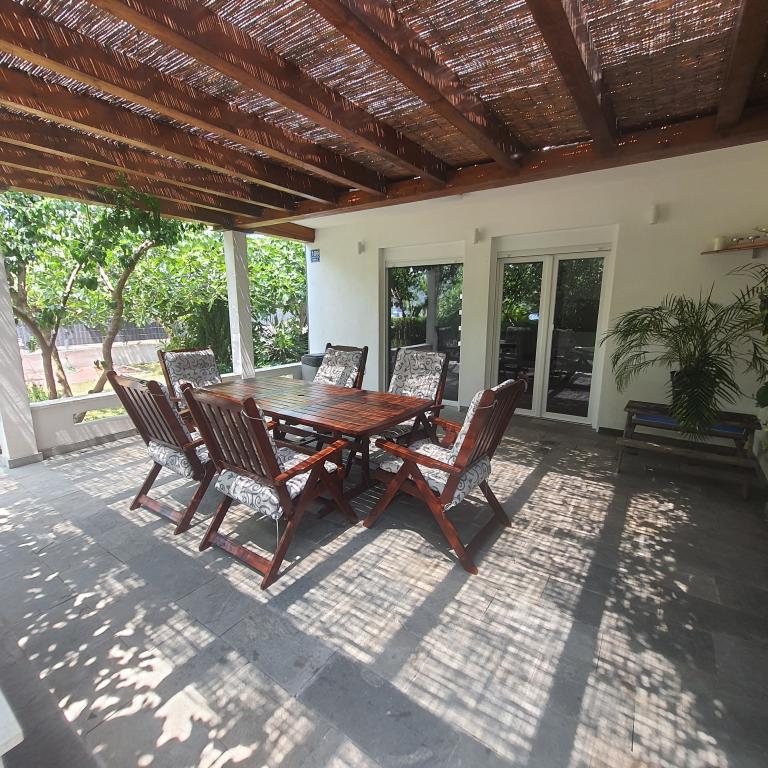 Zakwaterowanie i lokalizacja apartamentu są doskonałe! Wszystko, czego potrzebowaliśmy, czekało na nas w apartamencie, co było dużym ułatwieniem, ponieważ przyjechaliśmy z małymi dziećmi. Zostaliśmy powitani przez bardzo miłego właściciela. Lokalizacja tuż przy plaży, cicha, bez ruchu ulicznego, idealna dla dzieci. Na podwórku jest wystarczająco dużo cienia, kuchnia na świeżym powietrzu i wszystko, czego potrzeba do przygotowania posiłków. Apartament jest ładnie urządzony, wszystko jest nowe i czyste. Nie mamy absolutnie żadnych zastrzeżeń. Na pewno tu wrócimy. Ocena 10/10!