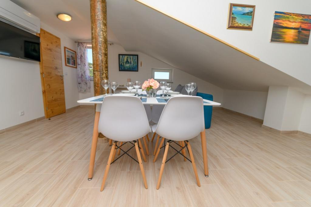 Całkowicie i nowocześnie wyposażone apartamenty w spokojnym miasteczku Miholascica na wyspie Cres. Obiekt znajduje się 150m od plaży żwirowej (zal), gdzie znajduje się mały obiekt z napojami i jedzeniem.