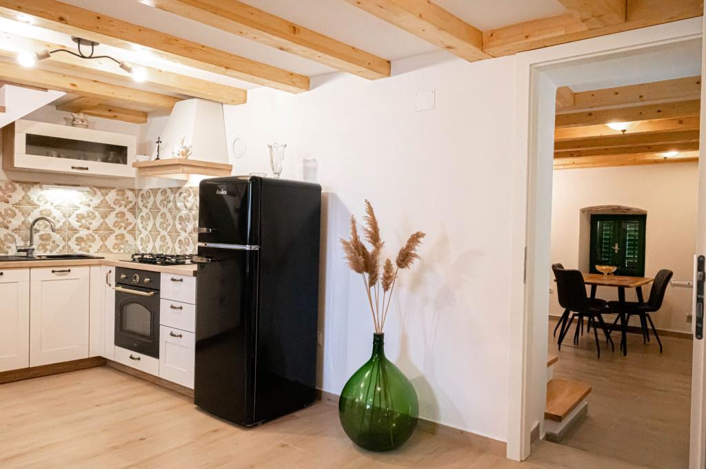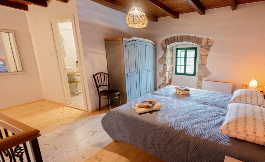 Na naszej największej wyspie znajduje się spokojne miejsce Vidovići 280m n.p.m., gdzie będziesz cieszyć się zapachami śródziemnomorskich roślin w otoczeniu ciszy i piękna przyrody. Panoramiczne widoki na zatokę i najwyższy szczyt wyspy Lošinj Osoršćica oraz wiele małych wysp archipelagu Lošinj i miasto Martinšćica. Dom wakacyjny Antica znajduje się w jednym z najstarszych domów w Vidovići, adres Vidovići 7, który został odnowiony w 2021 roku. Dom składa się z dwóch mieszkań do wynajęcia dla 6 osób. Zakwaterowanie oferuje 3 sypialnie, dwie łazienki i dwie kuchnie. Istnieje również możliwość wynajmu dla 4 osób iw tym przypadku mieszkanie składa się z 2 sypialni, jednej łazienki i kuchni.