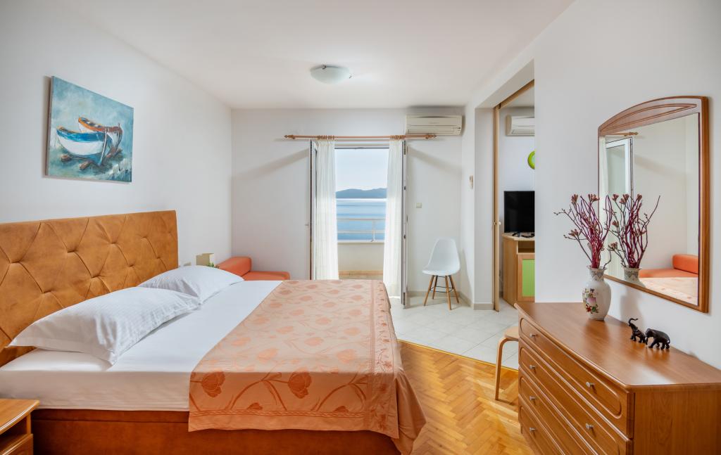 Luksusowe apartamenty w Villa Jana zapierają dech w piersiach, znajdują się w pierwszym rzędzie do morza z zachwycającym widokiem, zaledwie 150 m od kamienistej plaży.