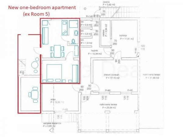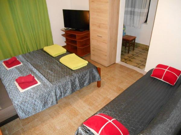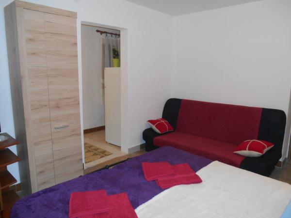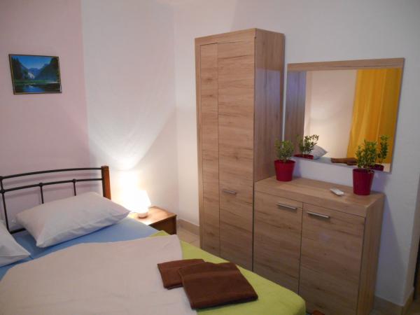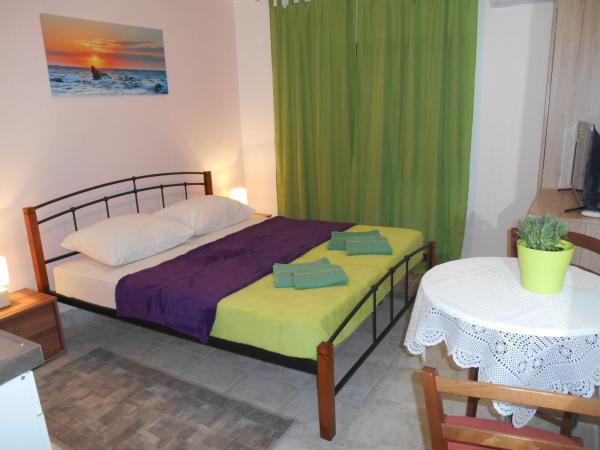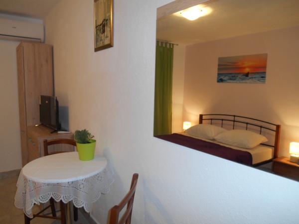 Jedna sypialnia z własną kuchnią i łazienką, 3 apartamenty typu studio (w kategorii mniejszych mieszkań, ponieważ nie gotują w sypialni - mają własną kuchnię), CAŁA PODŁOGA z dużym tarasem. Na parterze znajduje się jeden apartament z jedną sypialnią i dużym tarasem na dwóch poziomach. Wszystko jest w naszym rodzinnym domu z apartamentami "Stara Horvatia" w małym i cichym Maslenica, Eugen Kvaternika 6, (GPS: 44. 219935, 15. 546109). Z plaży mamy 170 m, a przy okazji, przy okazji do plaży przechodzi obok najbliższego sklepu. Z pokoju roztacza się widok na morze. Maslenica to przyjemne i spokojne miejsce Dalmacji idealne na spokojny wypoczynek. Wszystkie udogodnienia są wliczone w cenę - wszystkie potrzeby w kuchni z kuchenką gazową, dużą lodówką z zamrażarką, kuchenką mikrofalową. Łazienka z prysznicem (papier, szampon, suszarka do włosów). Wi-fi, klimatyzacja, telewizja satelitarna, duży taras z widokiem na morze, pościel, ręczniki, grill i parking w naszym ogrodzonym podwórku, opłata klimatyczna. Wszystkie ceny, w zależności od czasu - na życzenie. Nie ma dodatkowej opłaty.
