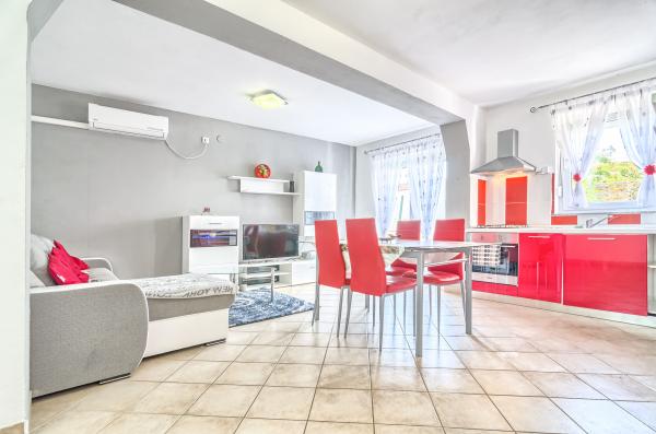 Apartamenty Marin w spokojnej części Medulin, w miejscowości Pošesi, oferują w pełni wyposażone mieszkanie: na parterze dwupokojowe mieszkanie z 4 łóżkami, zaledwie pięćdziesiąt kroków od plaży z widokiem na morze, parking oraz jacuzzi na parterze. Jacuzzi za dodatkową opłatą 15 €/dzień. Odległość od słynnej piaszczystej plaży Bjeca 800 m.
