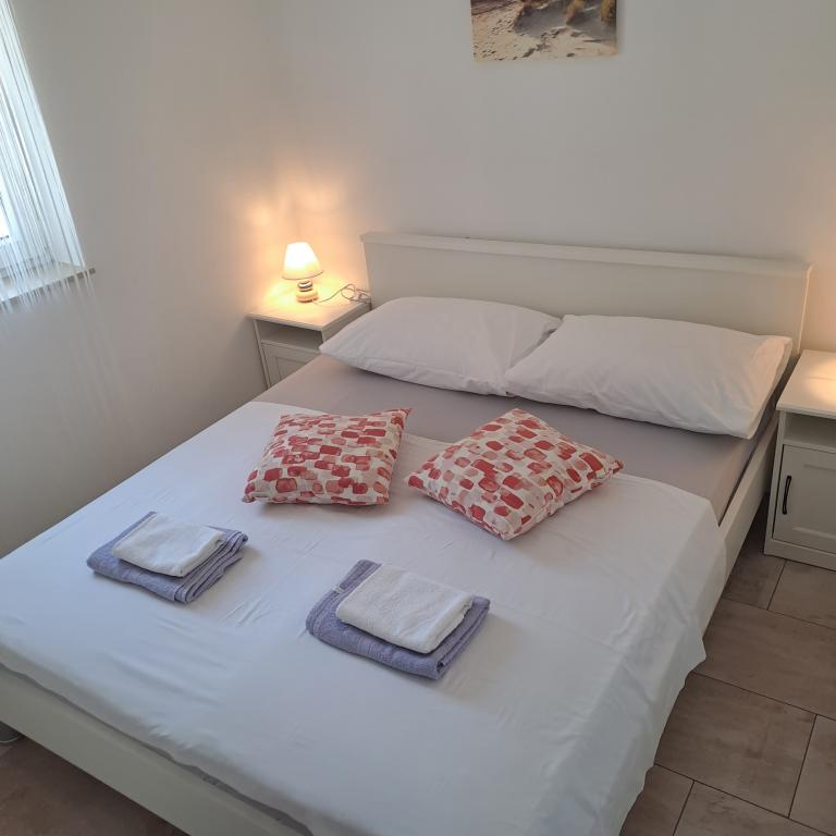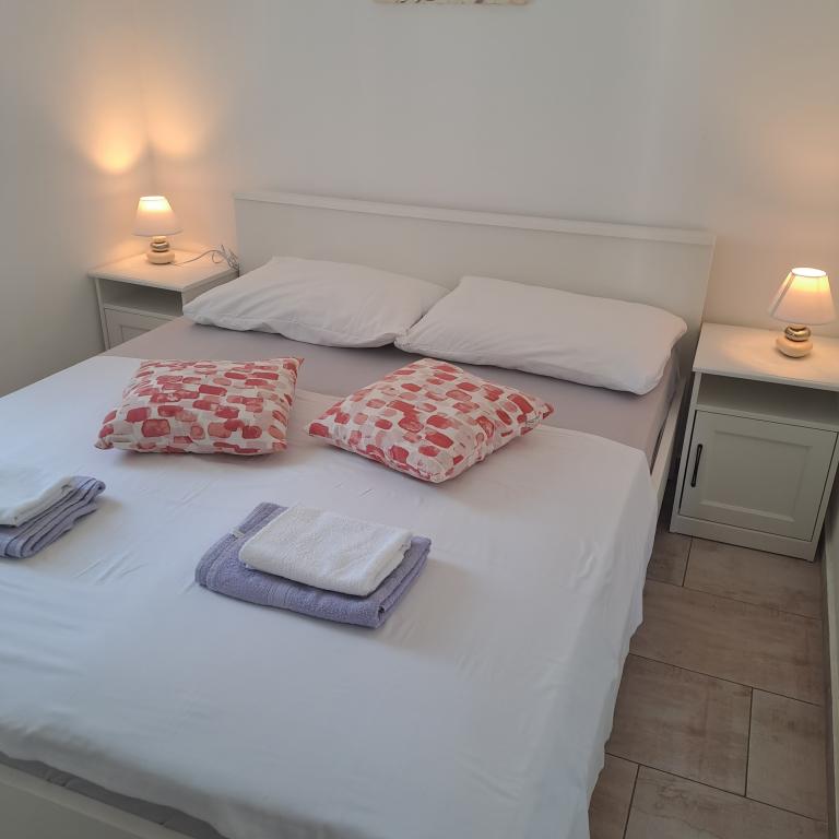 Apartamenty Mila-Casa Bianca położone są w spokojnej części miejscowości Medulin, zaledwie 900 metrów od centrum i 500 metrów od najbliższej plaży Bijelica. Oferują one zakwaterowanie z bezpłatnym WiFi, grillem i strzeżonym parkingiem. Obiekt położony jest 10 min. spacer do morza (spacerując ścieżką prowadzącą przez las sosnowy) do plaży Bijeca lub Belvedere, a do centrum Medulinu pieszo 5-10 minut (ulice są jednokierunkowe, więc wygląda dalej na mapie)... Medulin jako cel turystyczny, oprócz pięknych plaż, oferuje również inne usługi rozrywkowe i towarzyskie, takie jak ranczo z końmi (wszystkie informacje w internecie), loty samolotem sportowym i balonem, klub nurkowy, ścieżki rowerowe w całym Medulinie i okolicy, wycieczki statkiem, piękne promenady z wesołymi wydarzeniami i konsumpcją jedzenia i napojów na świeżym powietrzu oraz bogatą ofertę istryjskiego prosciutto, wina, oliwy z oliwek i całego bogactwa, którym obfituje nasza Istria...