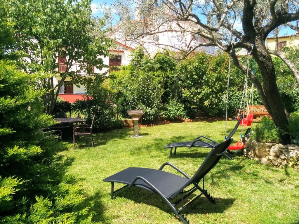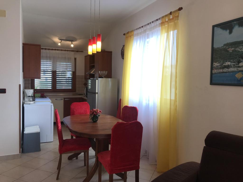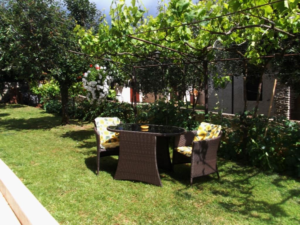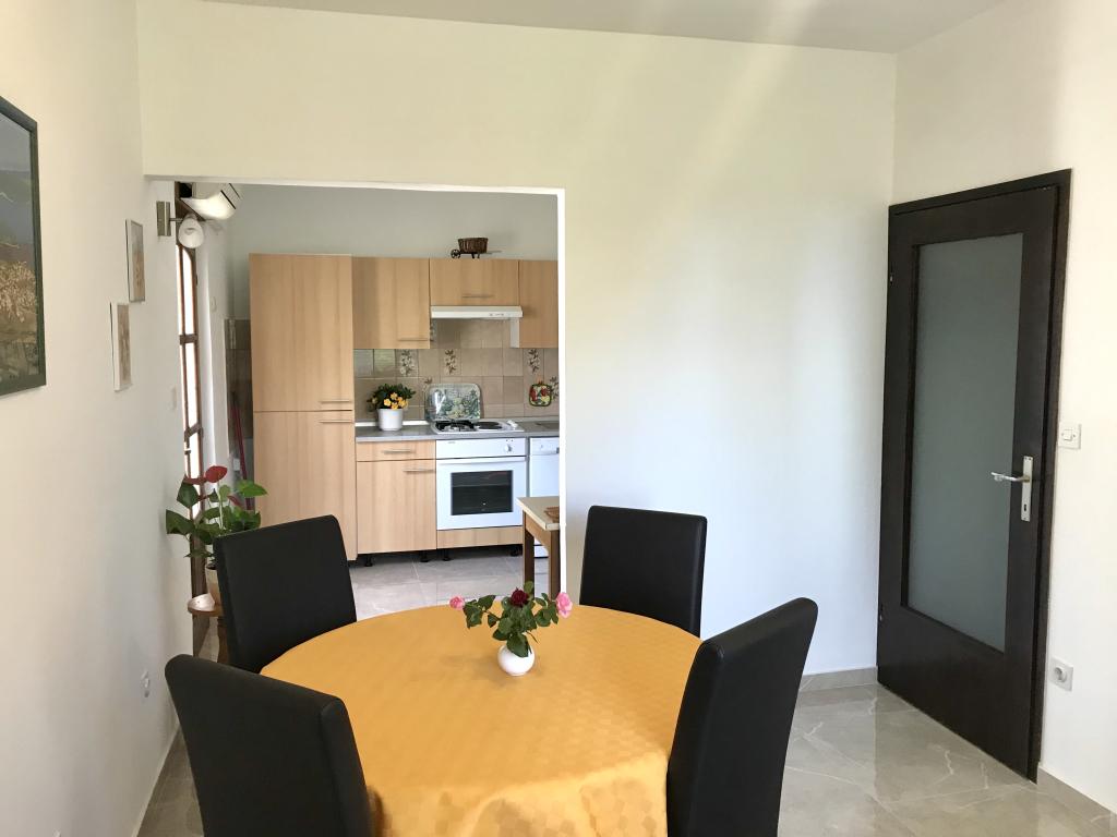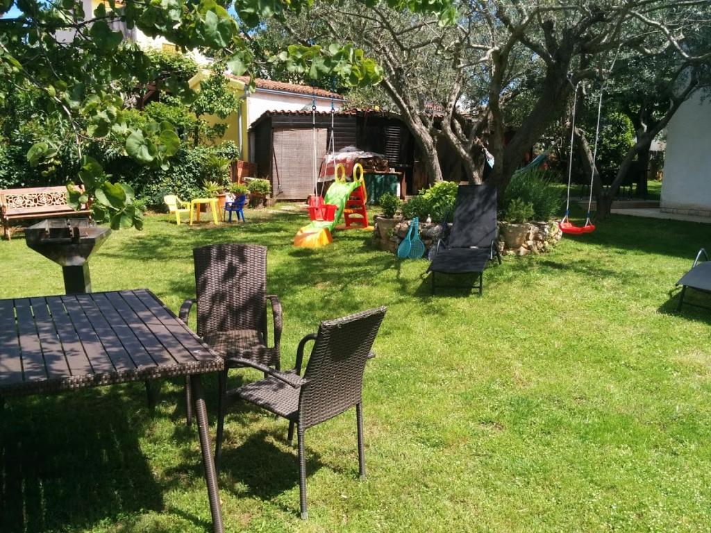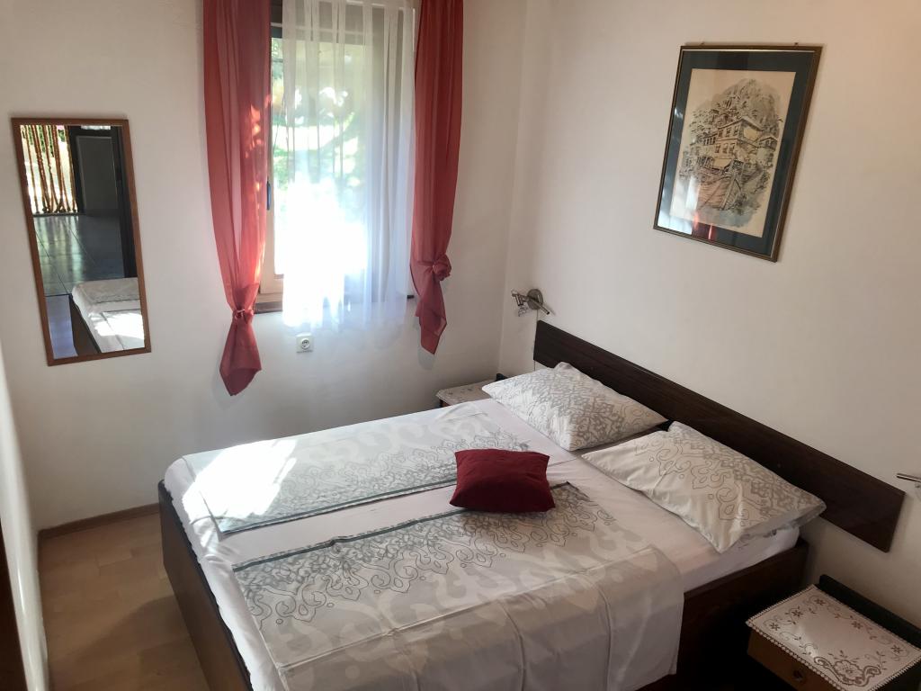 Dom położony jest w spokojnej okolicy Medulinu, 250-300 m od plaży, z dużym ogrodem i prywatnym parkingiem. Do wynajęcia są 4 apartamenty, z czego 2 znajdują się na parterze. Mieszkanie nr. 1 z 2 sypialniami, kuchnią, salonem, łazienką i tarasem. Mieszkanie nr. 2 z 1 sypialnią, kuchnią, łazienką i tarasem ogrodowym. Na 2 piętrze mieszkanie nr. 3 z 2 sypialniami, kuchnią, salonem, łazienką i balkonem. Mieszkanie nr. 4 z 1 sypialnią, kuchnią z salonem, łazienką i balkonem. Wszystkie apartamenty wyposażone są w klimatyzację, bezprzewodowy internet i telewizję satelitarną. W cenę wliczona jest pościel, ręczniki, opłata klimatyczna, zameldowanie. Każdy apartament posiada własne miejsce parkingowe, ogródek oraz przenośny grill do Państwa dyspozycji.