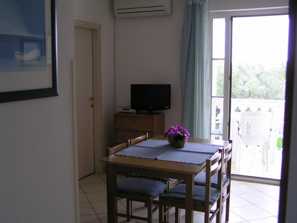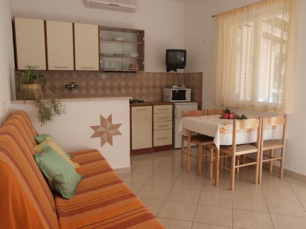Apartamenty w Medulin znajduje się tylko kilka minut spacerem od starego miasta Medulin. Są one otoczone bujną śródziemnomorską roślinnością. Ozdobiony trawnik, drzew oliwnych,, liść laurowy i zapach starych kamiennych stołach dać spokojną atmosferę nowoczesnych apartamentów nowych zapewniają komfort i zawiera wszystko, czego potrzeba do beztroskiego wypoczynku. Dom posiada 6 apartamenty: 4 jedna sypialnia dla 2-4 osób oraz 2 apartamenty dla 4-5 osób. Wszystko loggia od strony południowej, z widokiem na okolicę i morze i są wyposażone w: TV satelitarną, klimatyzację, pościel, ręczniki, obrusy, dopasowany zestaw kuchenny, ekspres do kawy, bezpłatne połączenie ADSL W pełni wyposażona kuchnia na świeżym powietrzu, w cieniu, można cieszyć się w przygotowania grilla. Z mieszkania są zastrzeżone i oświetlone miejsce parkingowe dla samochodu. W bezpośrednim sąsiedztwie (100-200m) znajdują się restauracje, sklepy, poczta, bank, apteka, przychodnia, a najbliższa plaża 600 m
