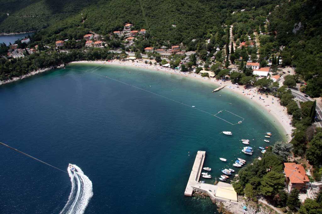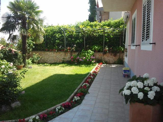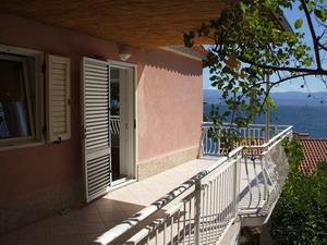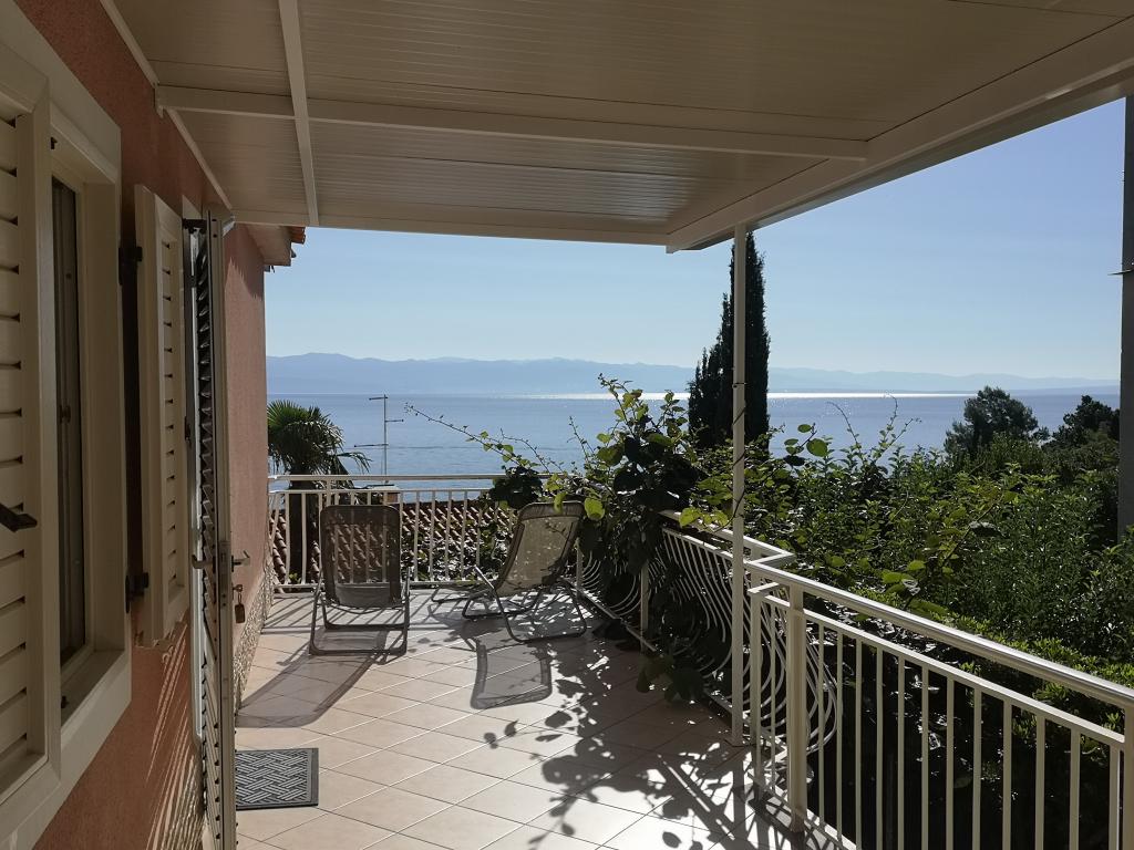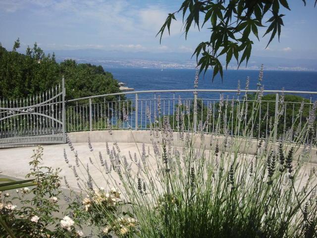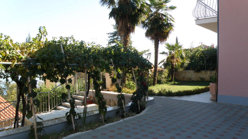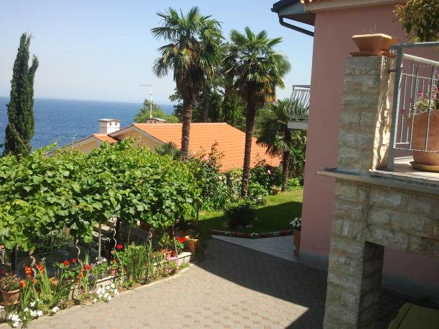 Dom położony jest w zieleni nad kamienistą plażą, na zboczach Parku Przyrody Učka. Na ogrodzonym podwórku znajduje się parking, ogród kwiatowy, trawnik, murowany grill ze stołem na 12 osób. W południowej i wschodniej części domu znajdują się dwa w pełni wyposażone i nowocześnie urządzone apartamenty z tarasami, które są w większości zadaszone i przyjemne do przebywania przez cały dzień. Oba apartamenty i oba tarasy mają widok na morze. Goście wynajmujący oba apartamenty mają do dyspozycji cały ogród. Ze względu na 60-metrową odległość od plaży oraz przestronną przestrzeń wewnętrzną i zewnętrzną, zakwaterowanie jest idealne dla rodzin z dziećmi i zwierzętami. Wyjątkowo duży, kameralny taras apartamentu na pierwszym piętrze z pięknym widokiem na morze, spokojna okolica, krystalicznie czyste morze, możliwość aktywnego wypoczynku, leśne szlaki, lungomare, kolarstwo górskie, blisko Opatija. Apartament na parterze posiada dwie oddzielne sypialnie z 3 i 2 łóżkami + dwie łazienki, pokój dzienny + 2 dostawki. Apartament na piętrze ma dwa pokoje z 2 i 3 łóżkami.