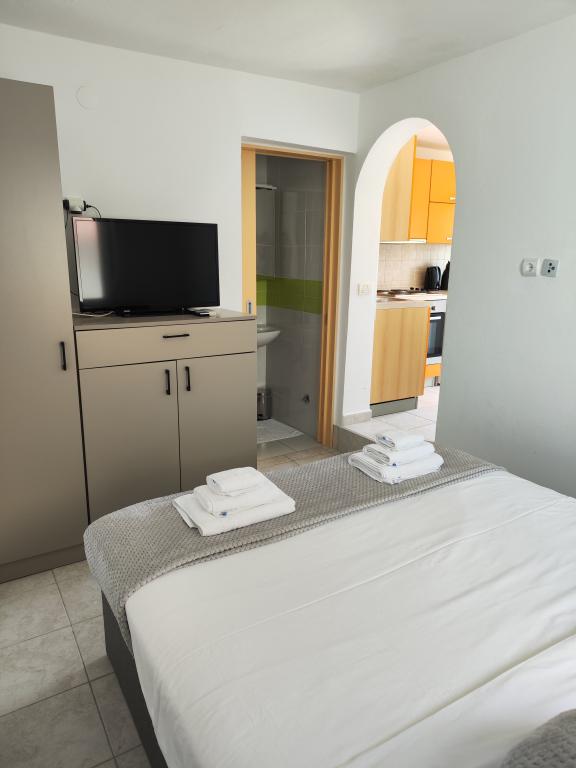 Jeździmy na wakacje do Chorwacji od kilku lat. Zazwyczaj podczas jednych wakacji testujemy kilka różnych noclegów i musimy przyznać, że ten apartament był jak dotąd naszym najlepszym! Apartament oferuje mnóstwo przestrzeni dla czteroosobowej rodziny – czuliśmy się w nim bardzo komfortowo. Jest nowocześnie urządzony, sprawia wrażenie luksusowego, niezwykle czysty (wyglądał prawie jak nowy) i posiada balkon z zapierającym dech w piersiach widokiem na główną plażę i całą zatokę Metajna, gdzie prawie każdego wieczoru podziwialiśmy zachód słońca. Apartament jest doskonale wyposażony. Oprócz przydatnych sprzętów, takich jak zmywarka, płyta indukcyjna, klimatyzacja, Wi-Fi (z silnym sygnałem) itp., znajduje się tu również ekspres do kawy i odkurzacz ręczny, co jest szczególnie cenne dla osób z dziećmi. Otrzymaliśmy nielimitowany zapas tabletek do zmywarki i kapsułek z kawą. Tuż przy budynku znajdują się dwa rodzaje grilli i leżaki hamakowe na tarasie. Podczas naszego pobytu gospodarze życzliwie pożyczyli nam również deski do pływania na desce SUP, co dało nam fantastyczną okazję, aby spróbować swoich sił w SUP po raz pierwszy. Apartamenty oferują również przestronny parking bezpośrednio nad budynkiem. Wszystkie te detale wpływają na komfort i poczucie komfortu pobytu. W dniu przyjazdu na stole znaleźliśmy torbę z prezentami, w której znajdowały się domowe marmolady przygotowane przez samych gospodarzy. To była przemiła niespodzianka. Gospodarze byli bardzo mili i komunikatywni od samego początku. Bez problemu pomagali nam we wszystkim, czego potrzebowaliśmy, i zawsze byli gotowi nam pomóc. Podczas naszego pobytu gospodyni dwukrotnie zaskoczyła nas pełnym talerzem świeżych naleśników i pysznym ciastem. Najbliższa plaża znajduje się zaledwie 2 minuty spacerem ulicami Metajny – głównej plaży Metajny. Tuż za niewielkim wzniesieniem znajduje się piękna plaża Ručica. Polecam wypożyczyć tam rower wodny i wybrać się na pobliską plażę Beritnica, z której roztacza się widok na zachwycające formacje skalne z piaskowca. O zachodzie słońca spacerowaliśmy nadmorskim szlakiem „Życie na Marsie”, który zaczyna się na końcu plaży w Metajnie i prowadzi do plaży Ručica. Jak wspomniałem na początku recenzji – ten apartament jest zdecydowanie najlepszym, jaki kiedykolwiek wynajęliśmy w Chorwacji. Czuliśmy się tu jak w domu. Polecam go z całego serca!