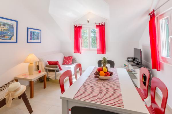 Nowo wybudowany, nowoczesny apartament w cichej zatoce na południowo-zachodniej części wyspy. Obiekt znajduje się blisko morza, w sosnowym lesie, z dala od wyspy 15 minut spacerem.
