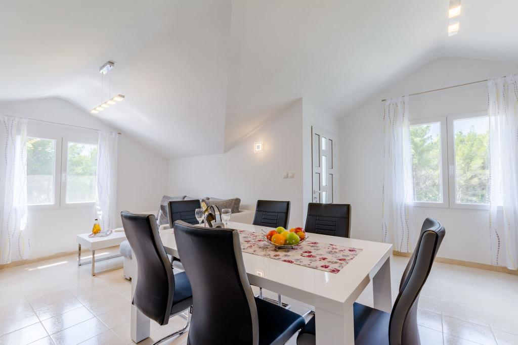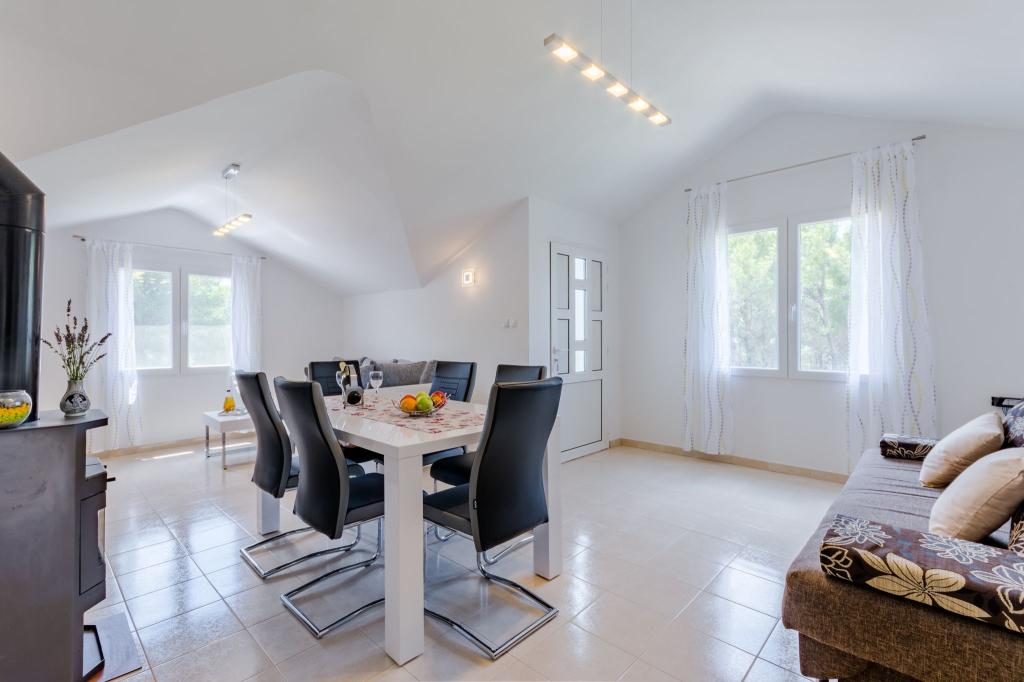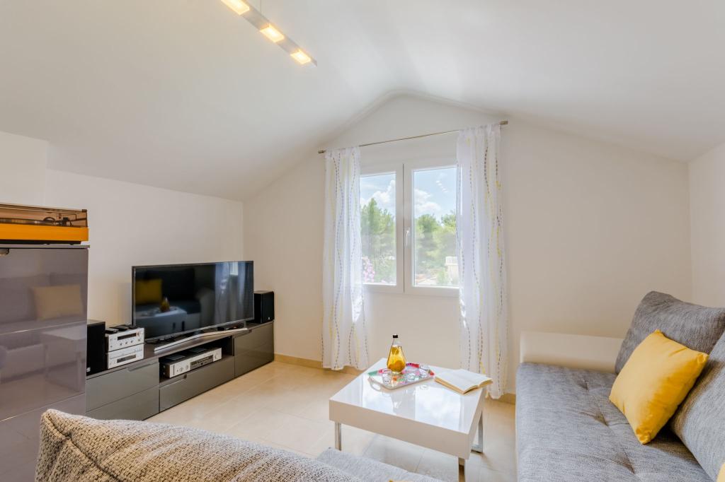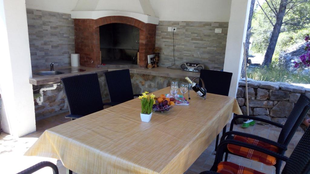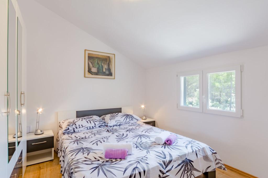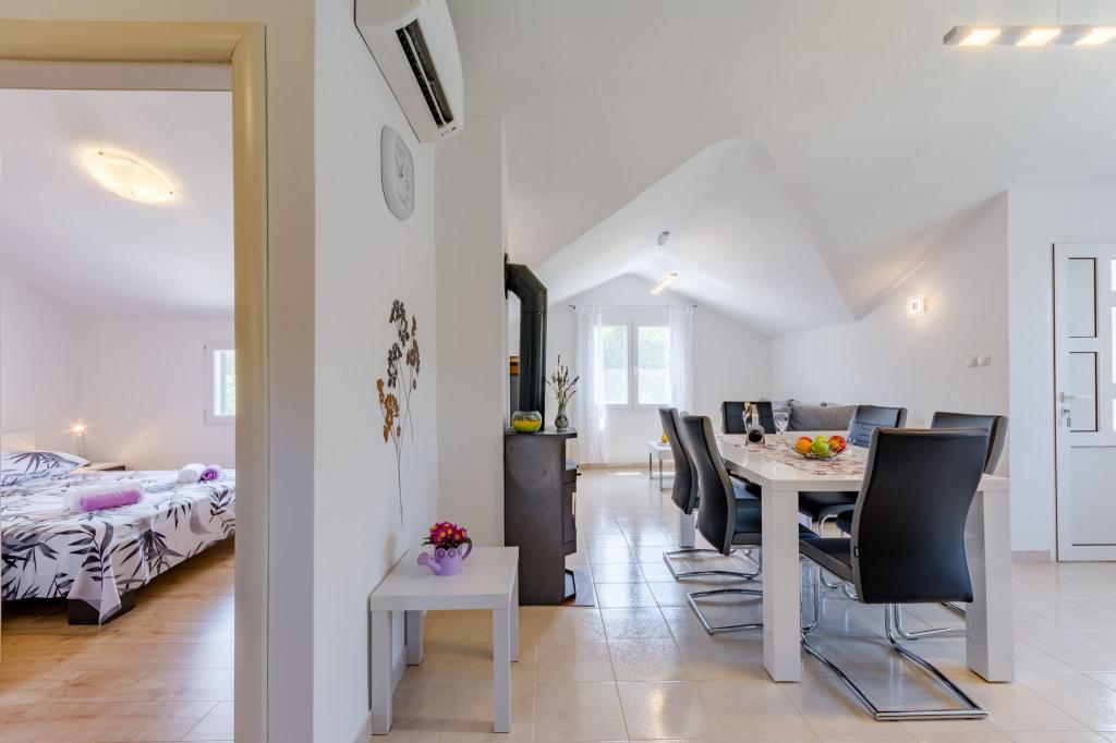 Apartamenty Rusula składają się z dwóch jednostek mieszkalnych o powierzchni 58 m2, z których jedna znajduje się na parterze, a druga na piętrze niezależnego domu, położonego w pięknej śródziemnomorskiej scenerii, w spokojnej okolicy zatoki Osibova, na południowym wybrzeżu wyspy Brač. Dom znajduje się 200 metrów od morza. Oba apartamenty są klimatyzowane, a goście mają telewizję satelitarną, bezpłatny bezprzewodowy dostęp do Internetu i parking. W mieszkaniu znajduje się ogród z ogrodem i zadaszonym gankiem z jadalnią, grillem i wyposażeniem. Goście mogą również korzystać z prysznica na świeżym powietrzu z ciepłą i zimną wodą. Sklepy spożywcze, restauracje, pizzerie i kawiarnie znajdują się w centrum Milny, 2 km od obiektu. Apartament na parterze składa się z dwóch sypialni, salonu z podwójną sofą, którą można złożyć w podwójne łóżko, kuchni i łazienki. Apartament na parterze ma jedną sypialnię, przestronny salon, kuchnię i łazienkę