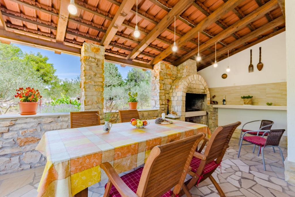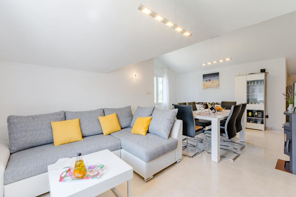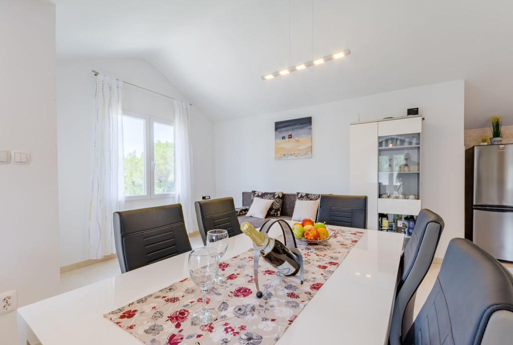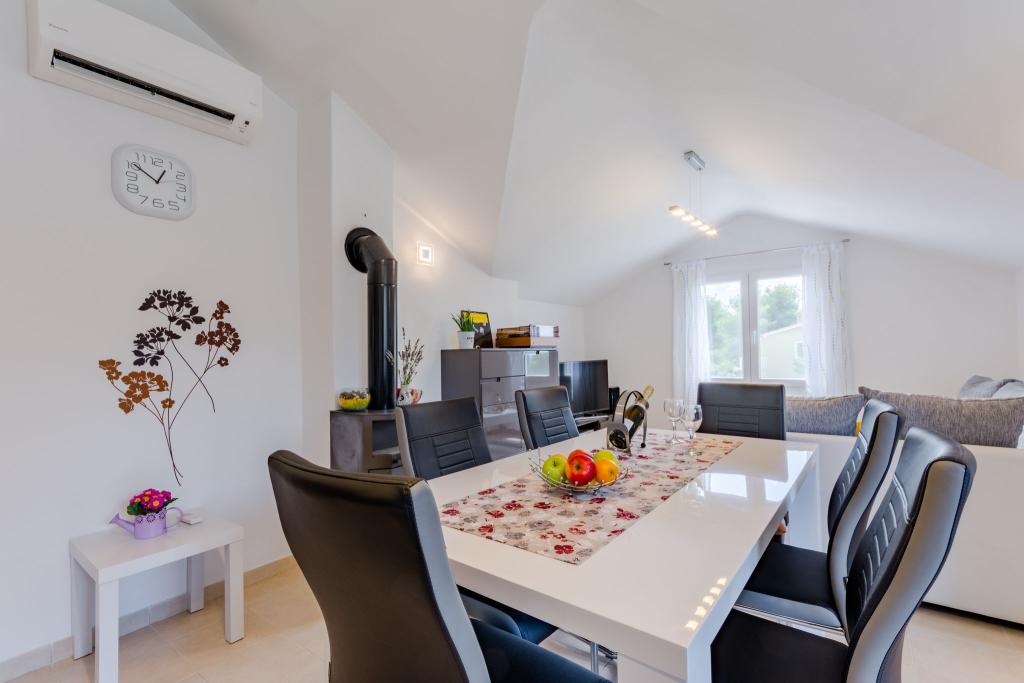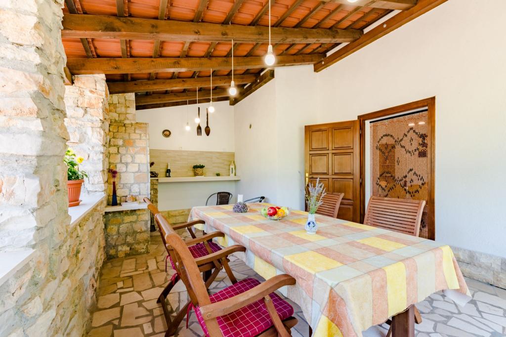 Apartamenty Rusula składają się z dwóch jednostek mieszkalnych o powierzchni 58 m2, z których jedna znajduje się na parterze, a druga na piętrze niezależnego domu, położonego w pięknej śródziemnomorskiej scenerii, w spokojnej okolicy zatoki Osibova, na południowym wybrzeżu wyspy Brač. Dom znajduje się 200 metrów od morza. Oba apartamenty są klimatyzowane, a goście mają telewizję satelitarną, bezpłatny bezprzewodowy dostęp do Internetu i parking. W mieszkaniu znajduje się ogród z ogrodem i zadaszonym gankiem z jadalnią, grillem i wyposażeniem. Goście mogą również korzystać z prysznica na świeżym powietrzu z ciepłą i zimną wodą. Sklepy spożywcze, restauracje, pizzerie i kawiarnie znajdują się w centrum Milny, 2 km od obiektu. Apartament na parterze składa się z dwóch sypialni, salonu z podwójną sofą, którą można złożyć w podwójne łóżko, kuchni i łazienki. Apartament na parterze ma jedną sypialnię, przestronny salon, kuchnię i łazienkę