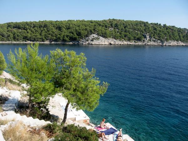 Piękna zatoka z czystej wody i prywatną plażę, gdzie można cieszyć się ciszą. Apartament całkowicie, jak pokazano, czyste i wyposażone we wszystko, czego potrzebujesz na wakacjach. Szczególnie podkreślić mnie istotną prysznic na zewnątrz i grill z dodatkowych pokoi. Gospodarze (cała rodzina) jest w pełni zaangażowana w swoją pracę, zawsze do usług. Absolute rekomendacja dla tych, którzy naprawdę chcą odpocząć od codziennego stresu i tłumów w ciągu roku.