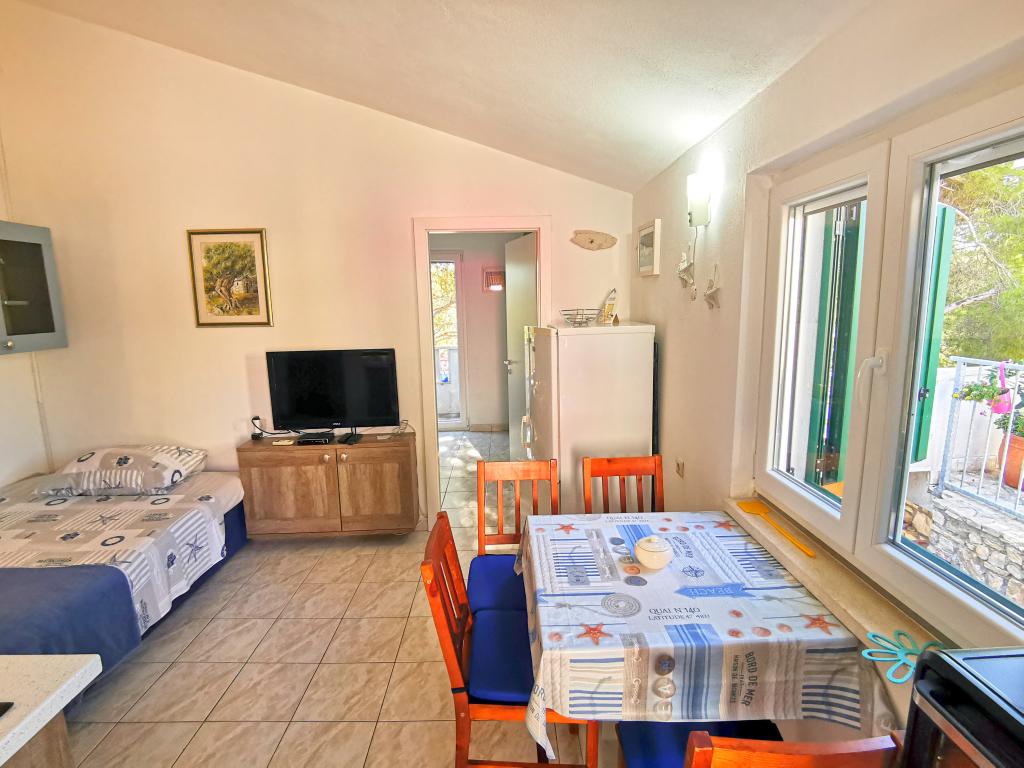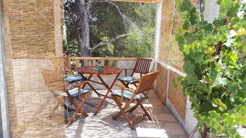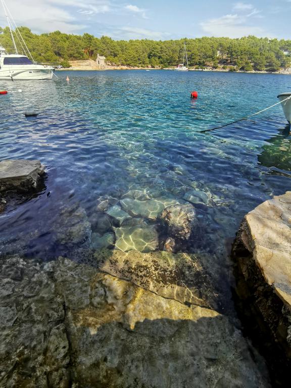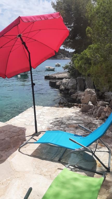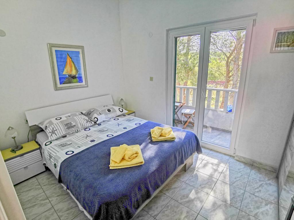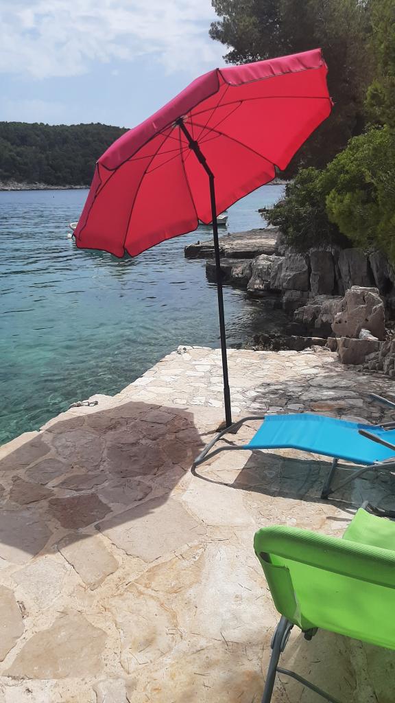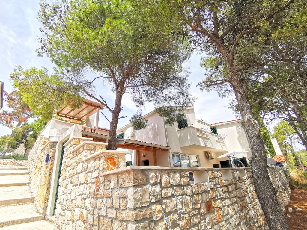 Dwa apartamenty nowocześnie wyposażone i klimatyzowane, położony w pięknym sosnowym lasy, zatoki smiještenena w południowo-zachodniej części wyspy, 30 m od morza, który jest również i plaża. Apartamenty składają się z kuchni, salonu, sypialni i łazienki. Każdy apartament posiada własne patio i miejsce parkingowe. Najbliższe miasto Milna, znajduje się w odległości 1500m, czyli 15 min spacerem.
