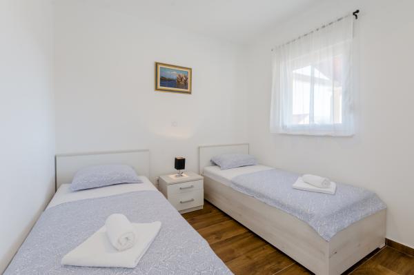 Świetna lokalizacja, świetne mieszkanie, wspaniały taras iw spokojnej okolicy. Blisko morza, gdzie nie ma tłumu, ale jest czyste morze. Pierwszy bar lub sklep oddalony jest o 3 km. Można odpocząć lekko lub aktywnie. Istnieje wiele ścieżek żwirowych do spacerów lub jazdy na rowerze. I koniecznie odwiedź tawernę Kapetanija Lozje na świetny stek. Polecamy.