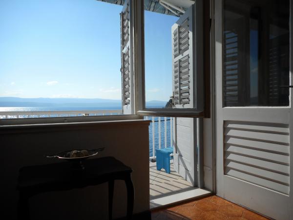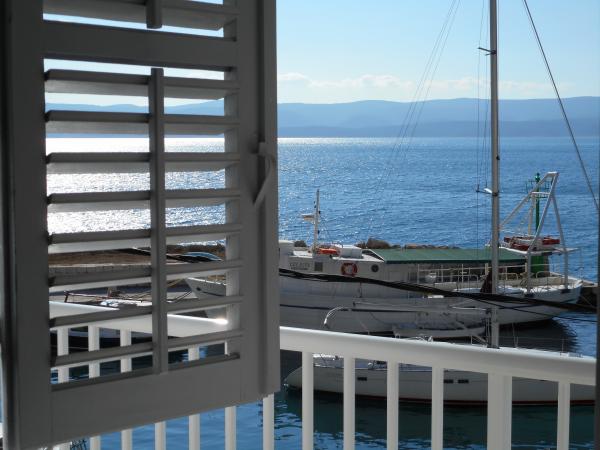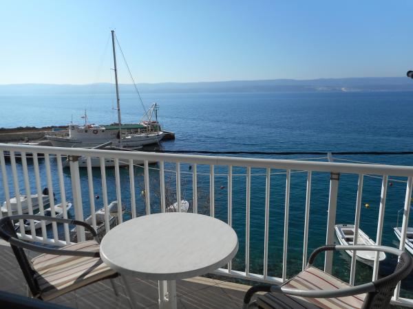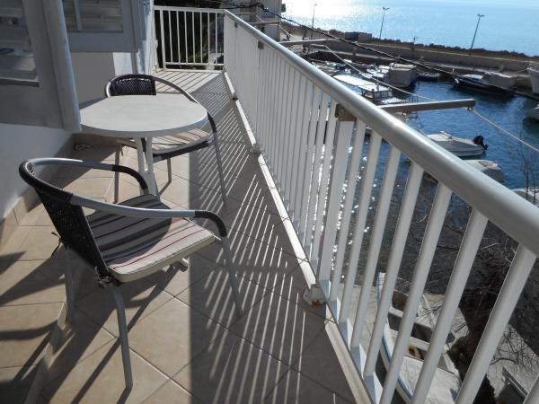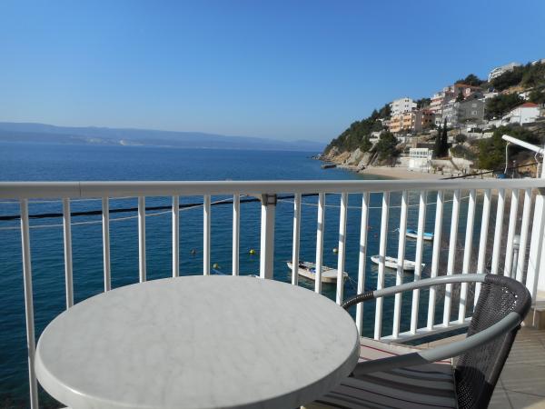 Wspaniałe miejsce, czysto i przestronnie, duży balkon z nad samym morzem! Mieszkanie z \"duszą\" - na półkach dzieła mistrzów literatury i filozofów (nawet z 1891r !). Maski i inne pamiątki z podróży właścicieli fascynują, a jednocześnie nie zakłócają swobody korzystania z mebli i sprzętów. Sprzęt gospodarstwa domowego nowy i wysokiej jakości. Do najbliższej plaży mniej niż 20m, ale obok znajdują się jeszcze dwie - znacznie ciekawsze:) Obok restauracja - raczej cicha i spokojna, absolutnie nie zakłócała naszego wypoczynku, podobnie jak i port - niewielki - tylko na użytek miejscowych. W mieszkaniu jest klimatyzacja, mimo upałów korzystaliśmy z niej tylko raz, ponieważ w panuje tu przyjemny, naturalny chłód. Łazienki niezbyt nowoczesne, ale bardzo zadbane i funkcjonujące bez zarzutu. Dla nas wszystko super - a do tego niekrepujące swobody oddzielne wejście z tyłu budynku. Pani Jelena to urocza osoba mówiąca biegle po angielsku, pomocna i szanująca prywatność swoich gości. Czuliśmy się jak w hotelu. Jakieś 80 m od apartamentu znajduje się budka z naleśnikami, frytkami i hamburgerami (przystępne ceny). Mimo, że apartament nie dysponuje miejscami parkingowymi, nie ma problemu z miejscami na parkingu publicznym, trzeba chwilę poczekać i zawsze się coś znajdzie:) Gorąco polecam. Zdjęcia nie oddają uroku tego miejsca! Dodam, że morze jest tak czyste, że z balkonu można obserwować pływające w nim ryby.